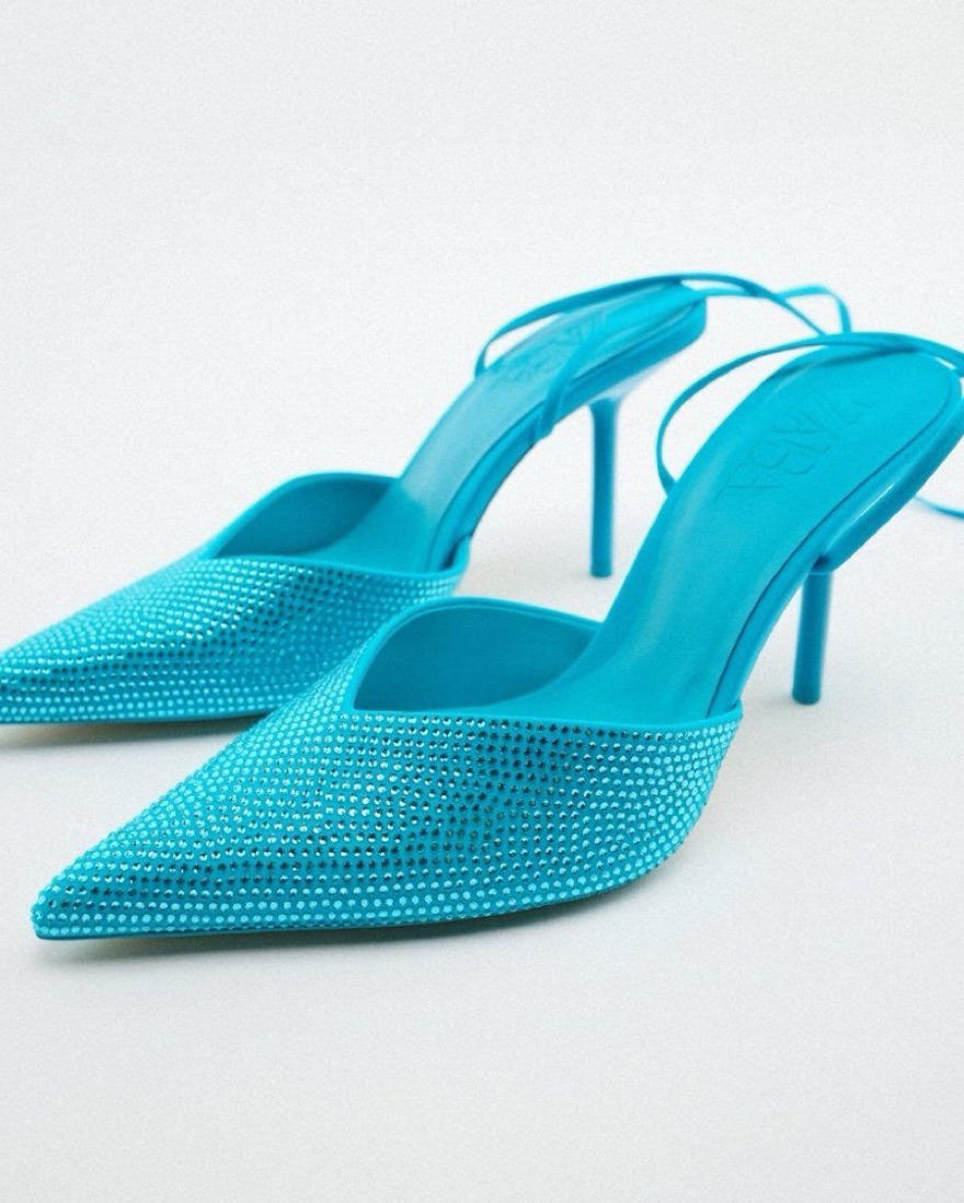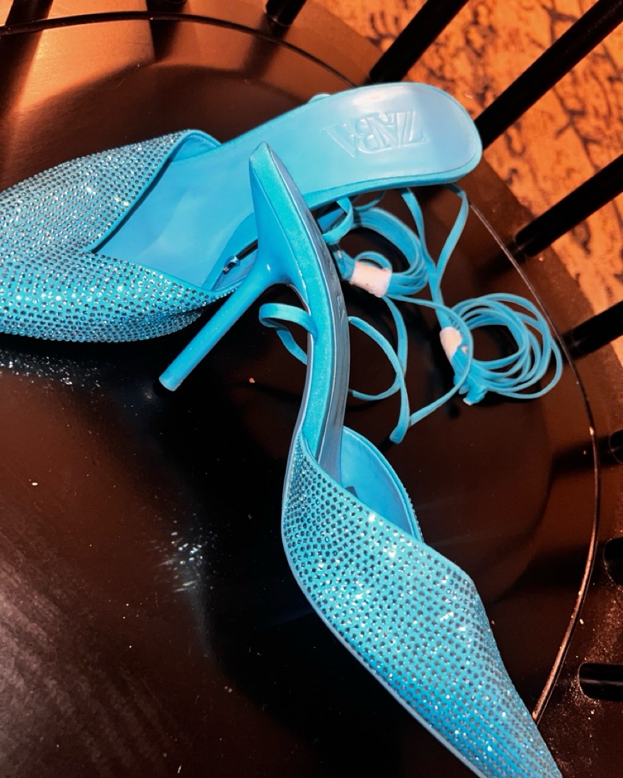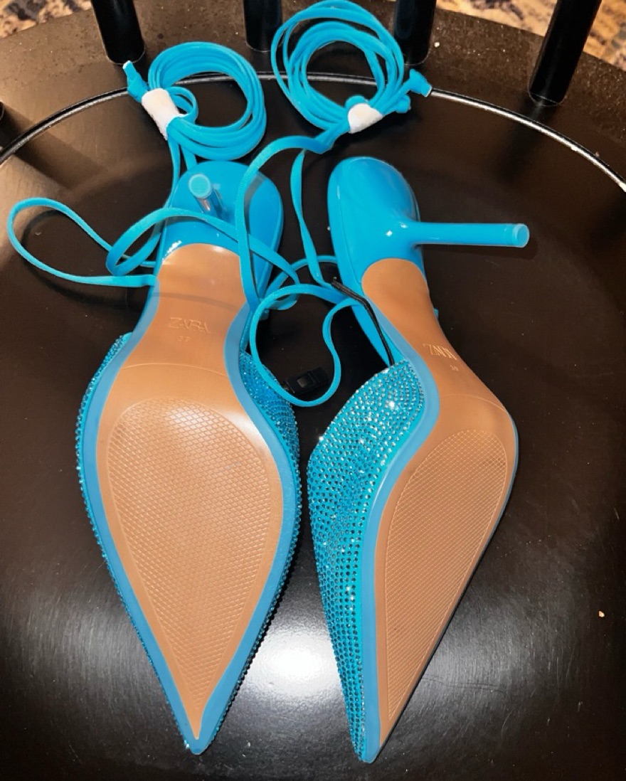 ZARA Blue Crystal Lace Up Heels by Zara - Pickle