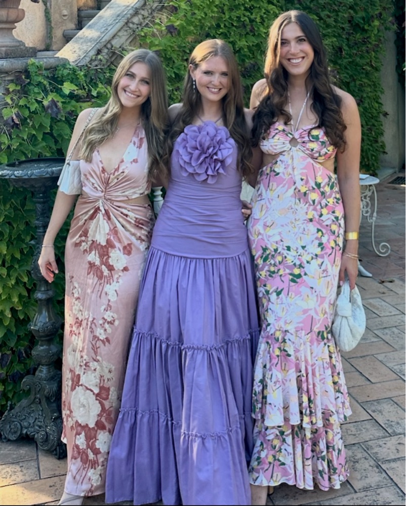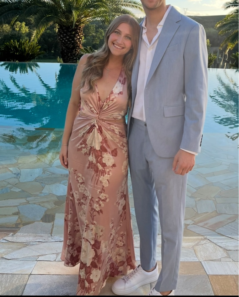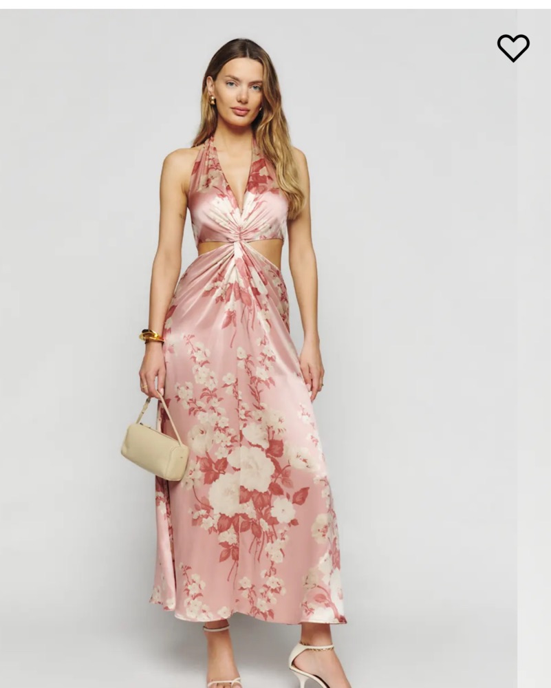This stunning maxi dress is perfect for a summer garden party or formal event. The vibrant floral print and flowing silhouette create a romantic, elegant look.
