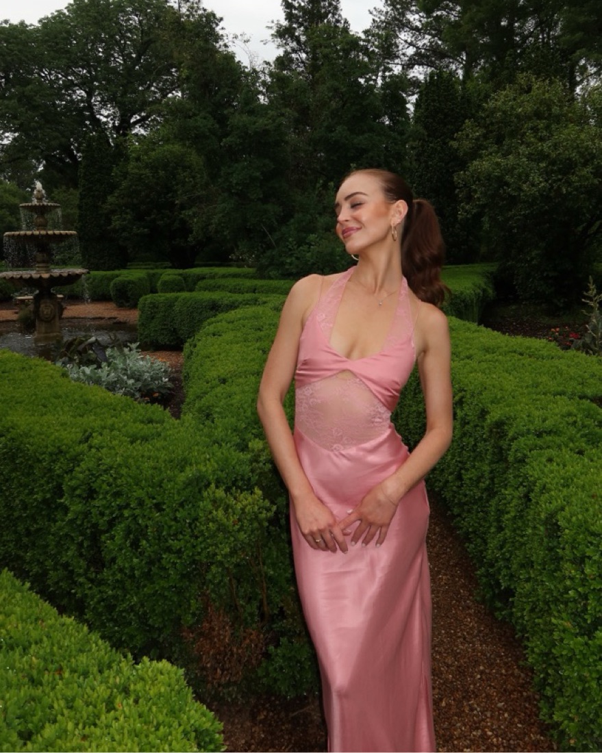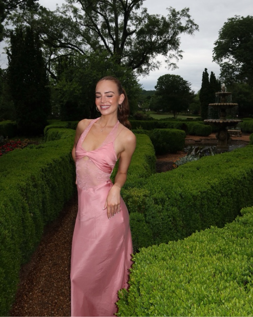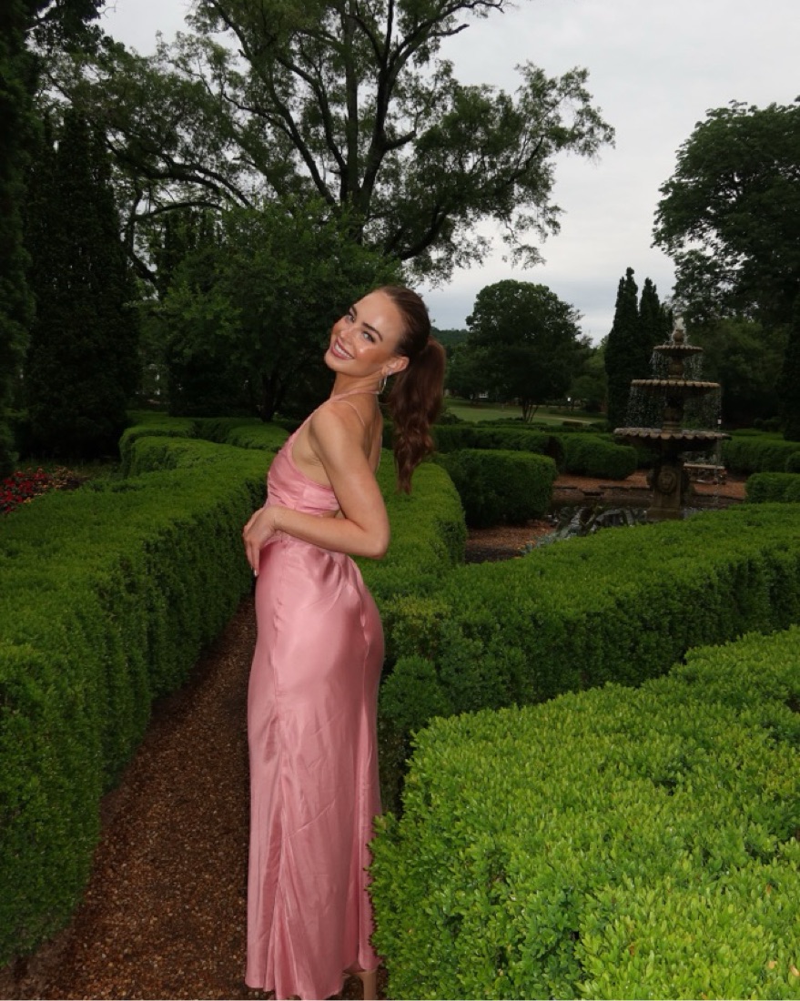 This stunning maxi dress is perfect for a formal event or special occasion. The vibrant pink color and elegant halter neckline create a sophisticated and glamorous look. Item is tailored to make it tighter around the breast area.