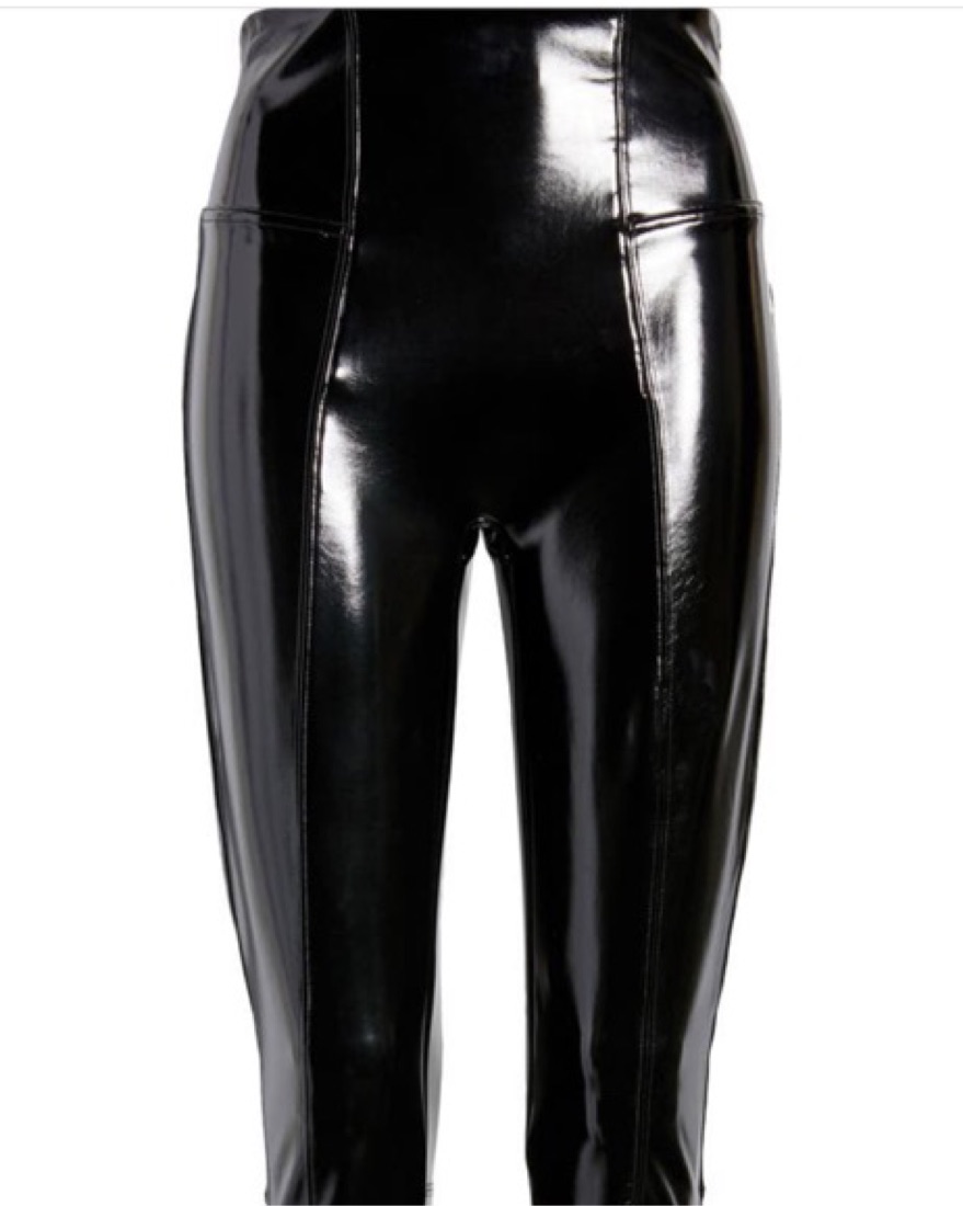 A high-shine finish dials up the head-turning appeal of faux-leather leggings fashioned with a hidden contoured waistband and sleek, smoothing fabric. The leggings hit at the natural waist, providing great coverage while eliminating muffin top.