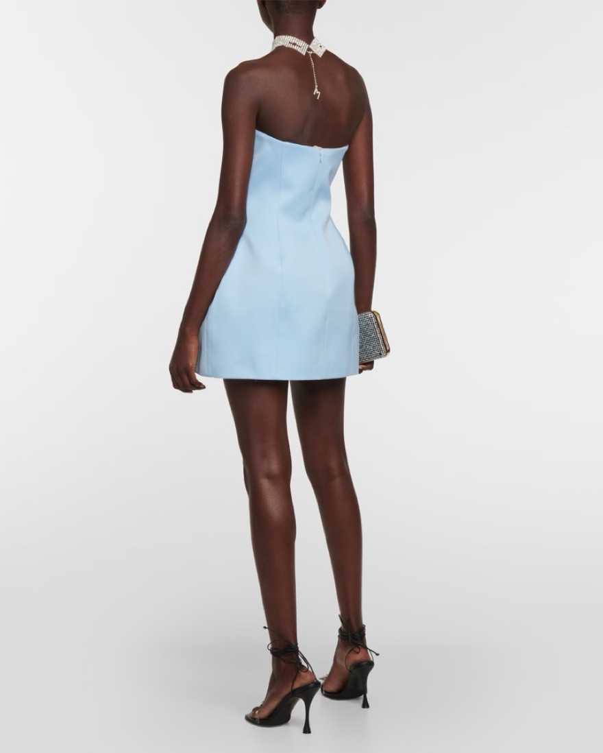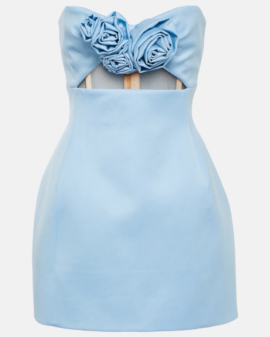 Magda Butrym's minidress is a lesson in modern corsetry. Made from wool and lined with silk, this piece has structural boning and features a floral appliqué at the bust – a hallmark of the brand.