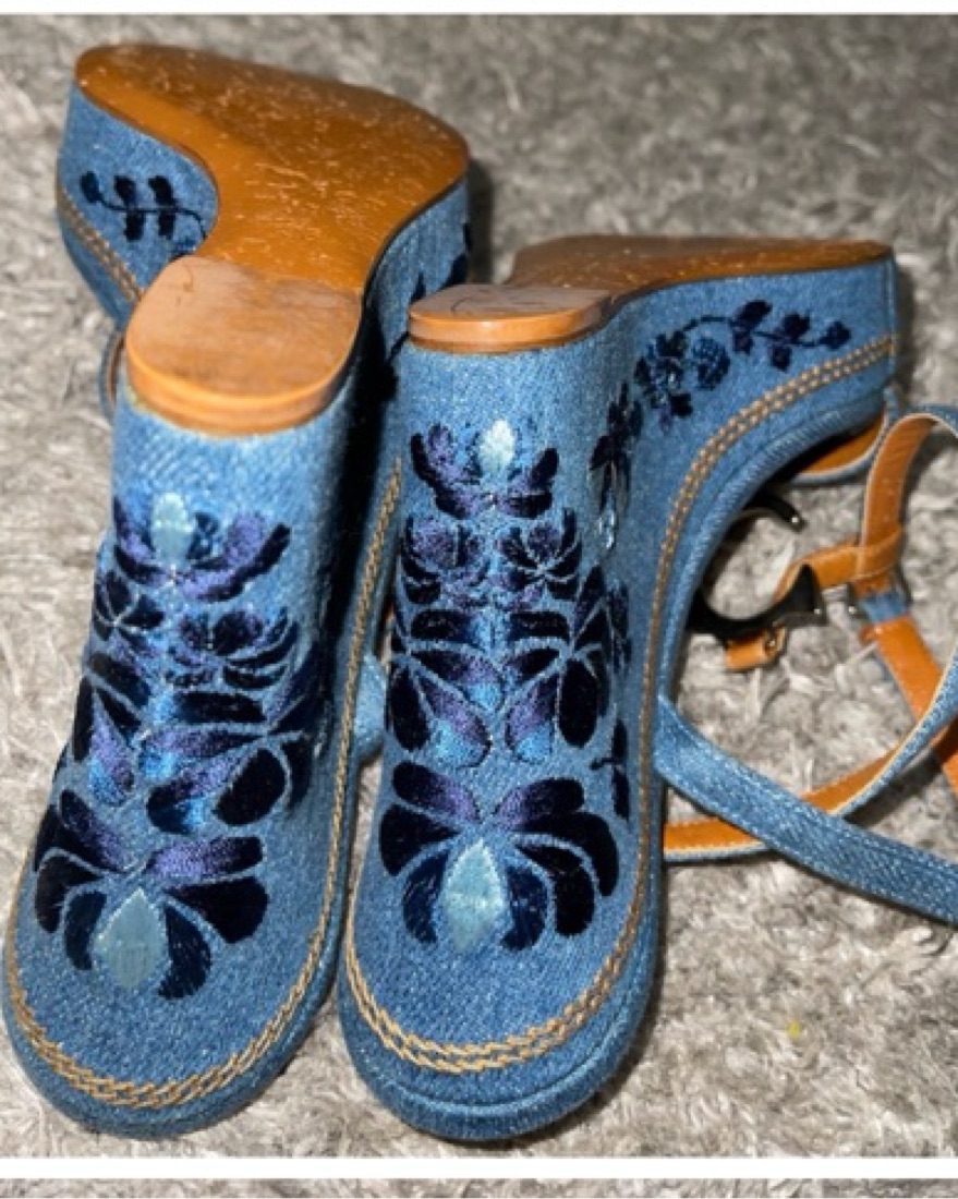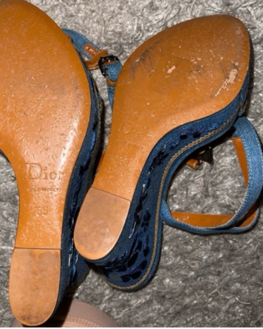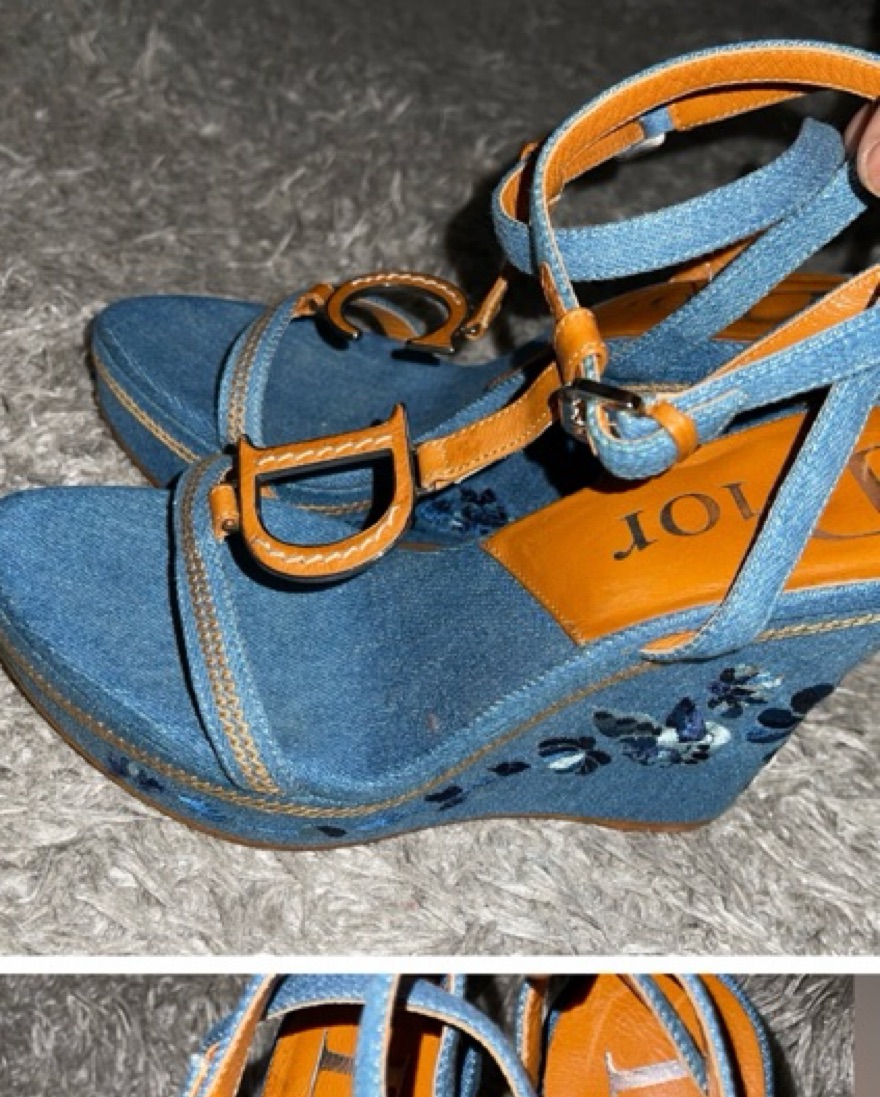 Vintage Christian Dior Denim wedge heel by Christian Dior - Pickle