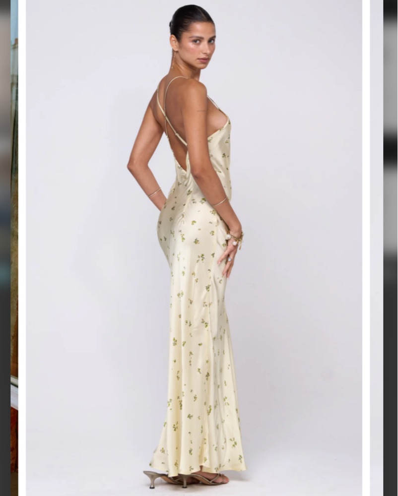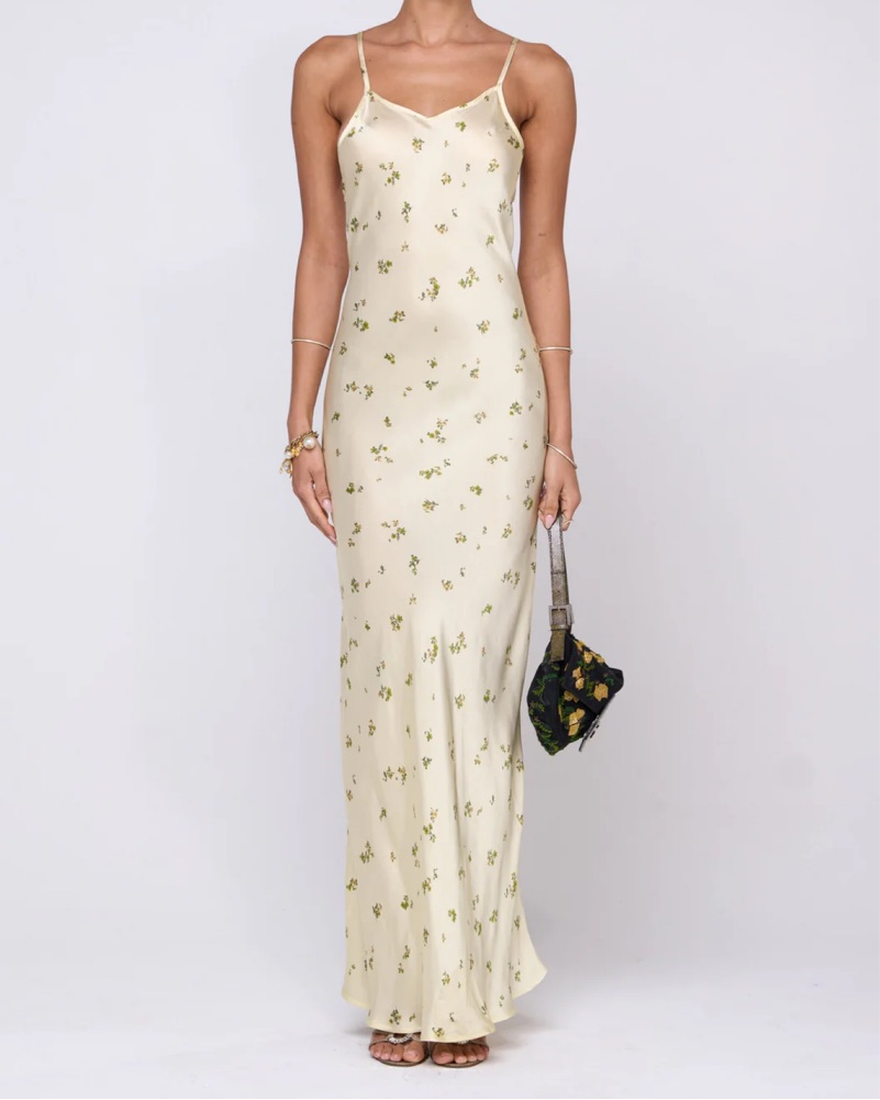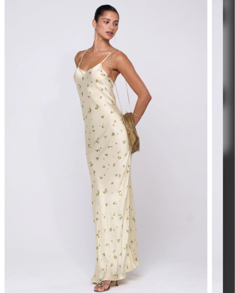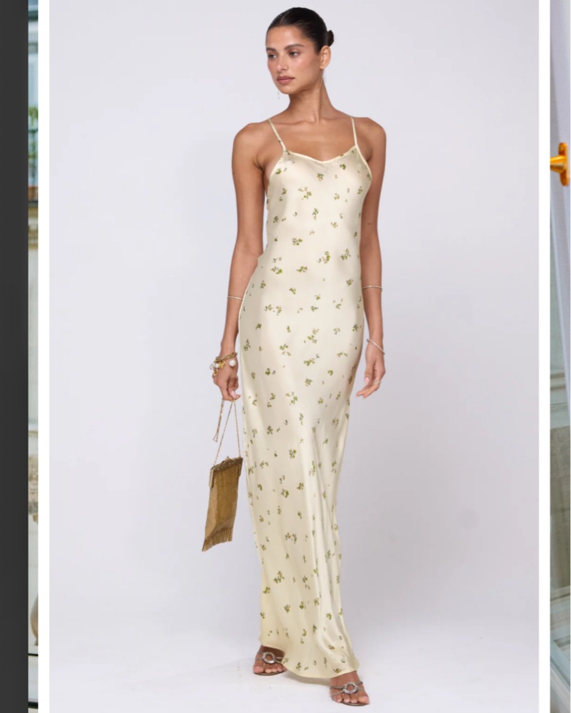 VIDA DRESS IN BEURRE. Step back in time with the Vida Dress! This vintage slip dress inspired maxi will transport you to the glamour of the past. With its elegant design and flowy silhouette, you'll look and feel effortlessly chic. Perfect for a romantic evening or a stroll along the coast.