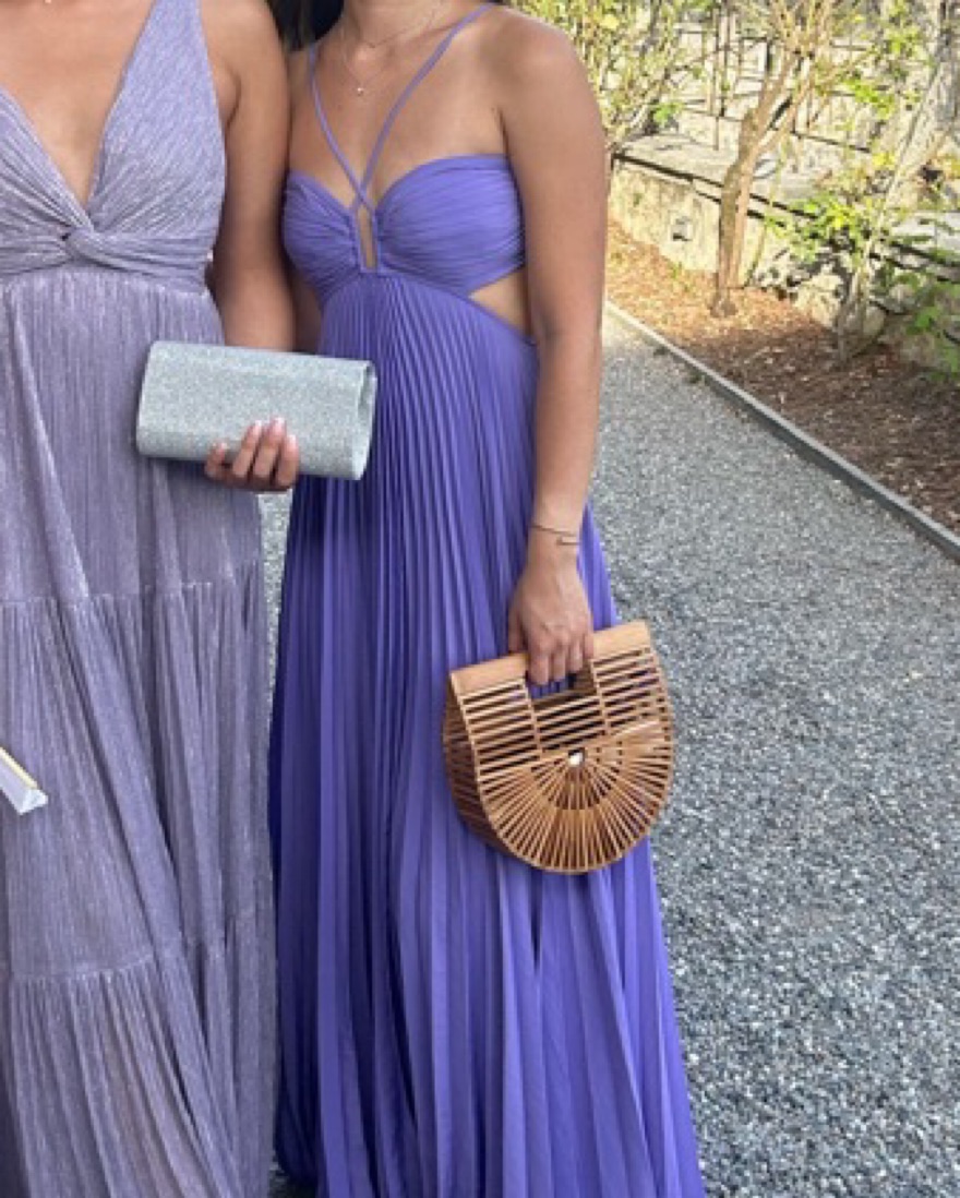 Purple ALC dress - pleated. For reference i am 5-4.5 and the dress is slightly long on me with 3 inch heels!