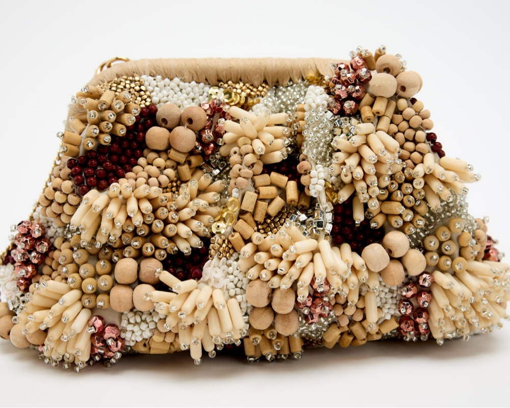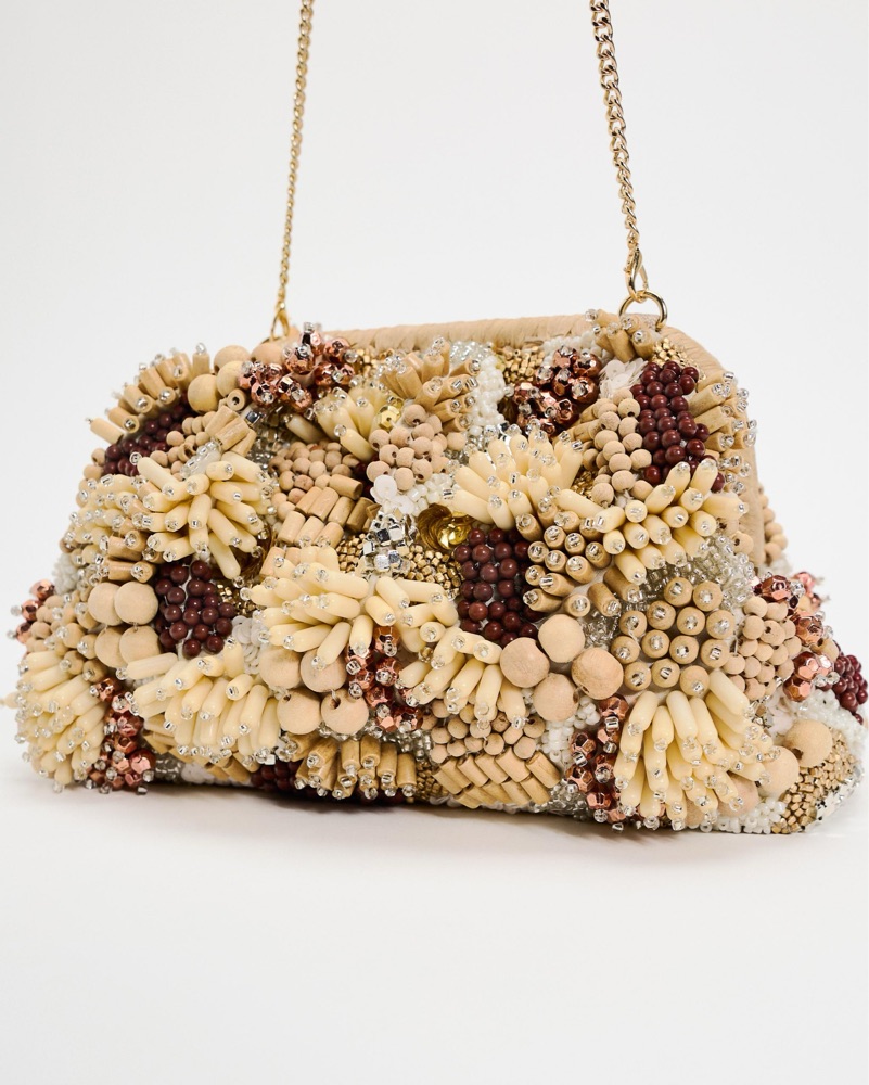 Beaded Clutch, perfect for events. Can be worn with or without chain. Height x Length x Width: 6.3 x 9.8 x 5.1 inches (16 x 25 x 13 cm)