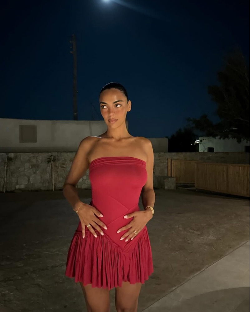 Beautiful raspberry dress !! From belle the label also known as (belle anna) it’s a size XS but can fit a small or medium honestly it’s so stretch !! This is such a good quality item !Please take good care of it. No self tanner , no body oil or glitter.