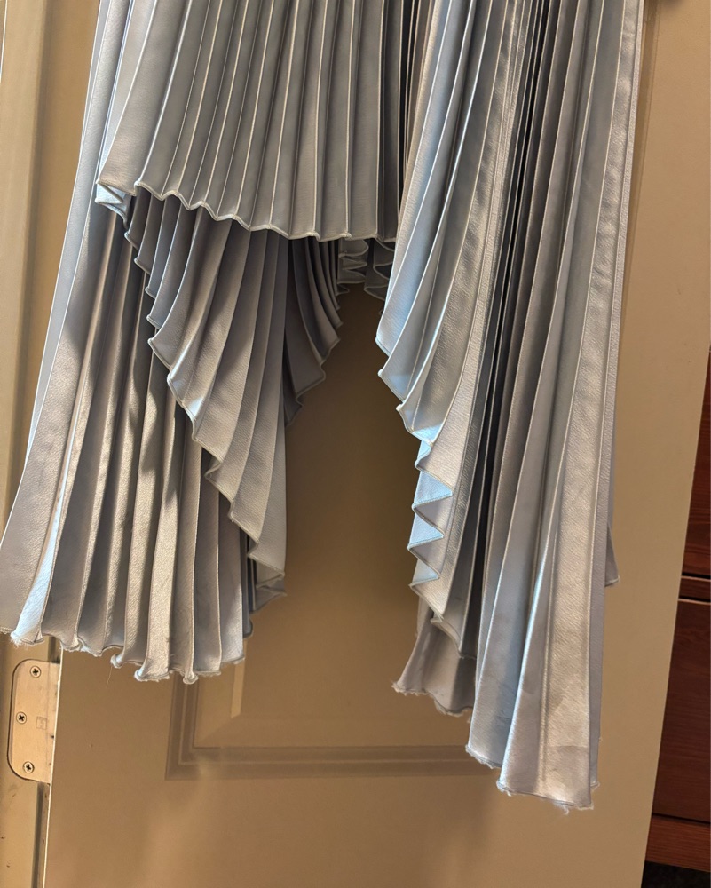 The bottom is slightly strained but not noticeable when wearing due to the flowy fabric.