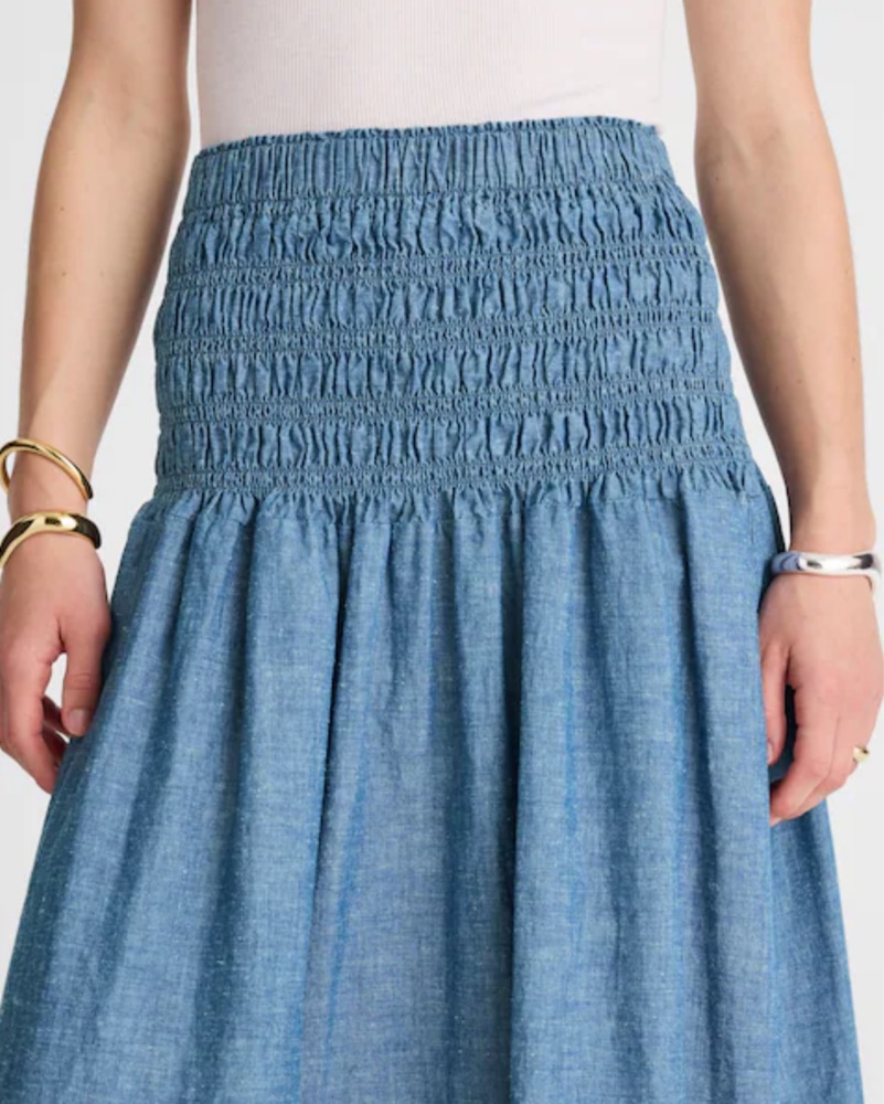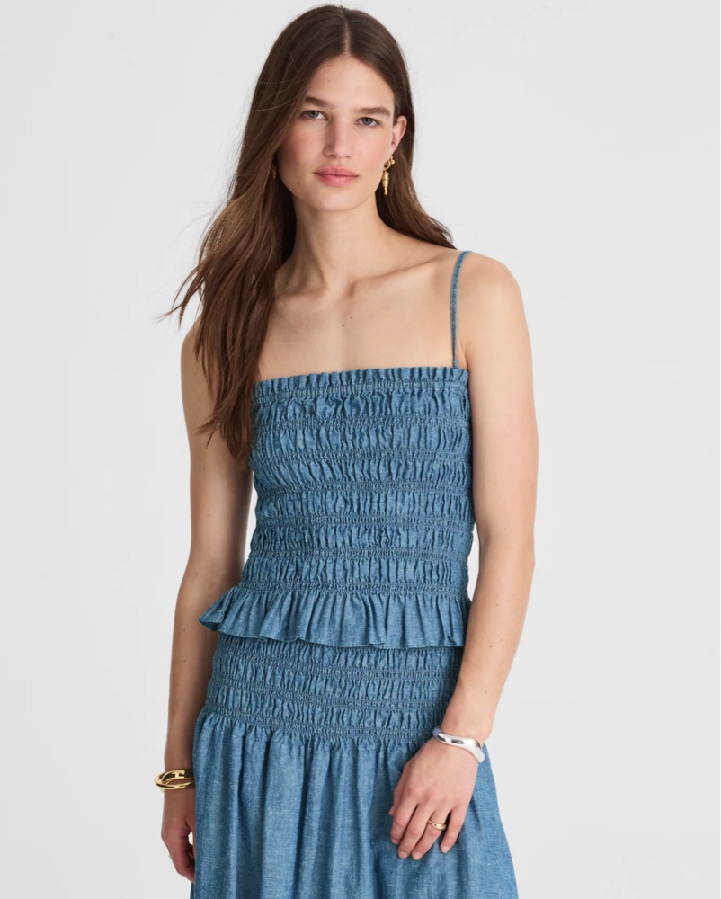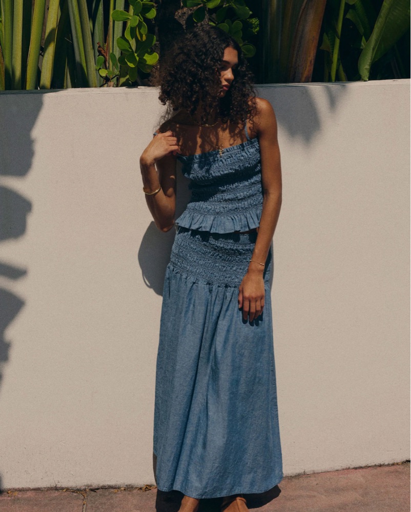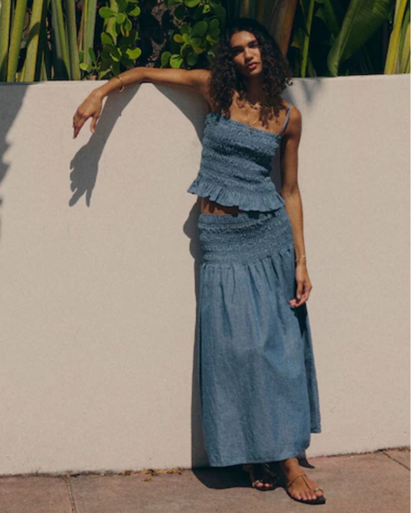 Will fit XS and S! So flattering! This denim set by Madewell is the most lightweight, comfy & fun way to rock a daydrink, summer day, vacation, western party or casual night out. Pair the top and ruffled skirt together or mix & match them with other pieces.