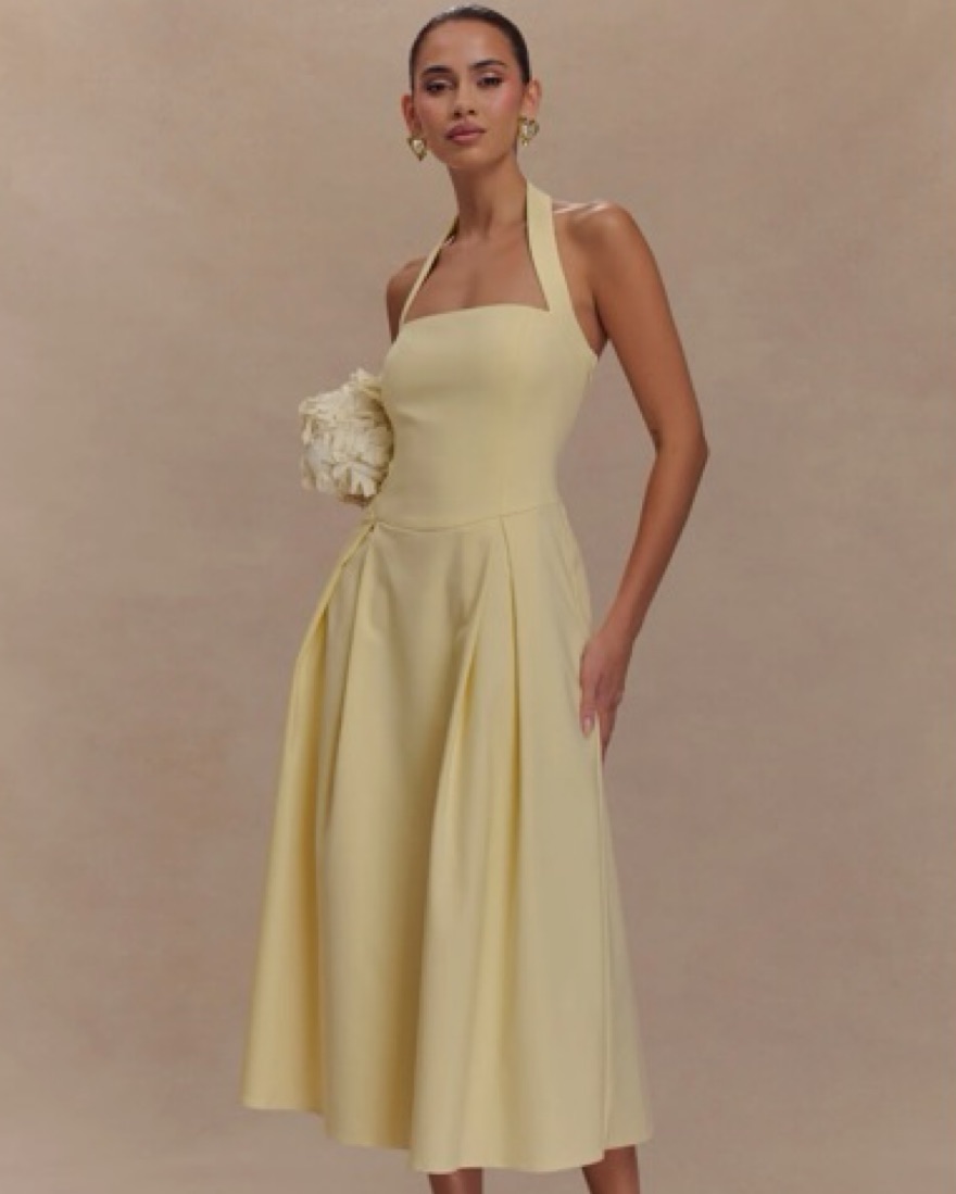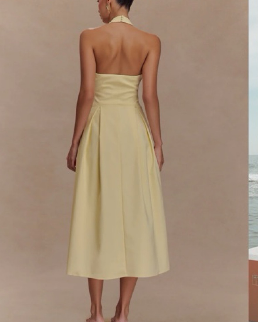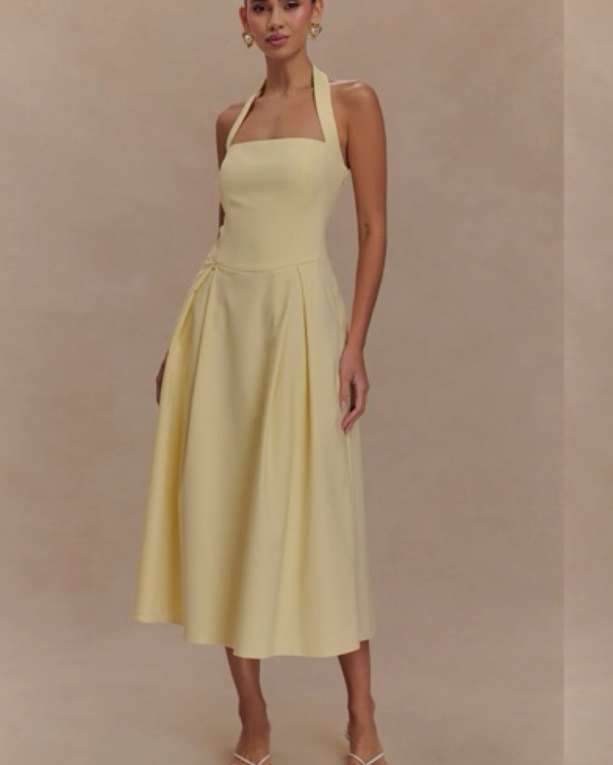 Butter Yellow Meshki Halter Dress