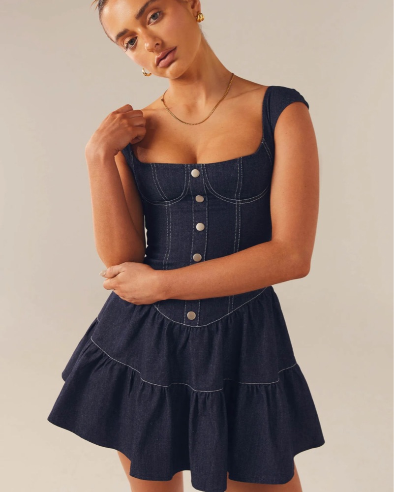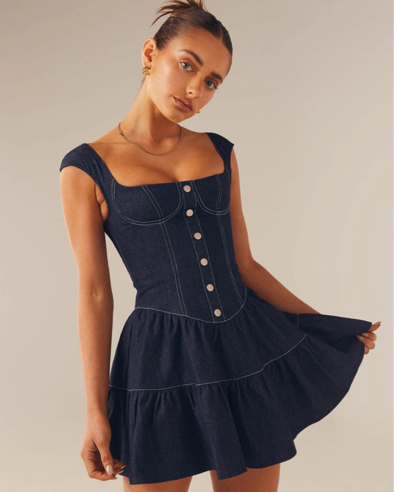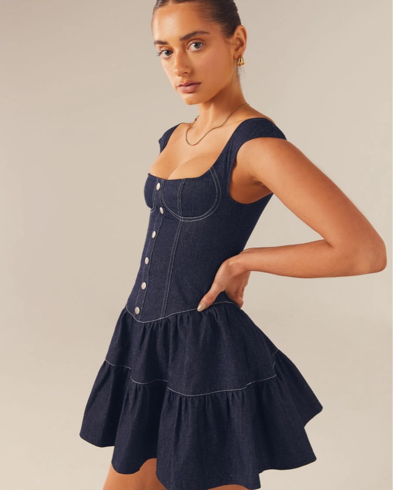 Denim Bustier Mini Dress in Indigo by Peppermayo - Pickle