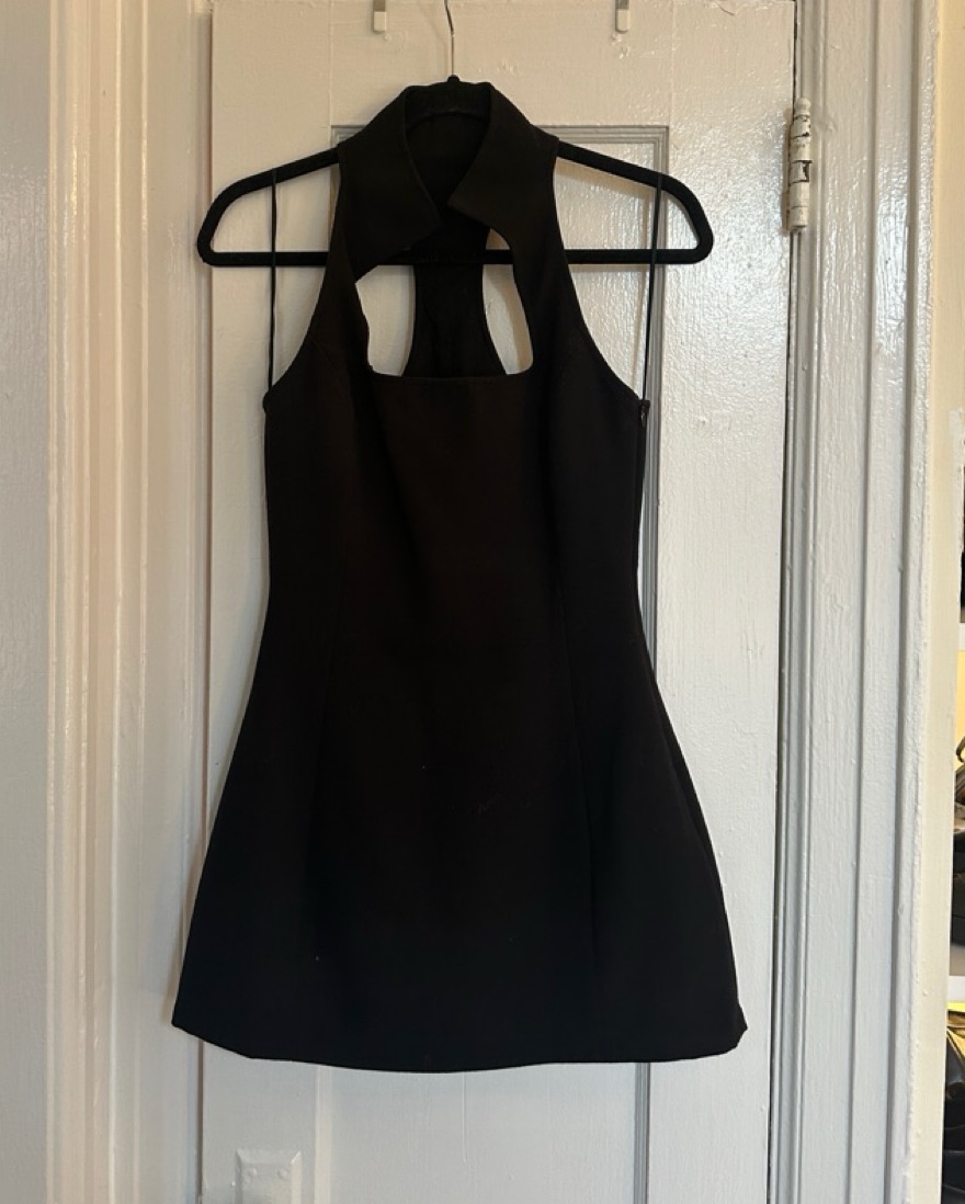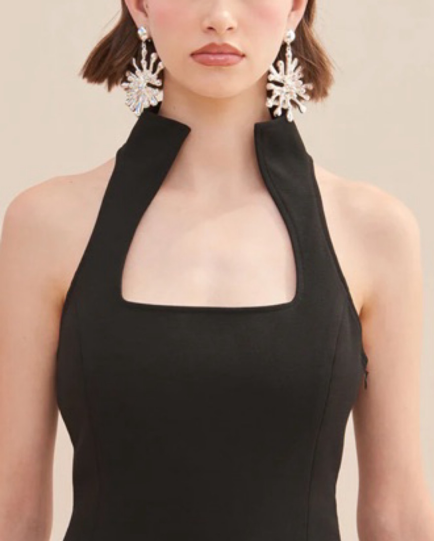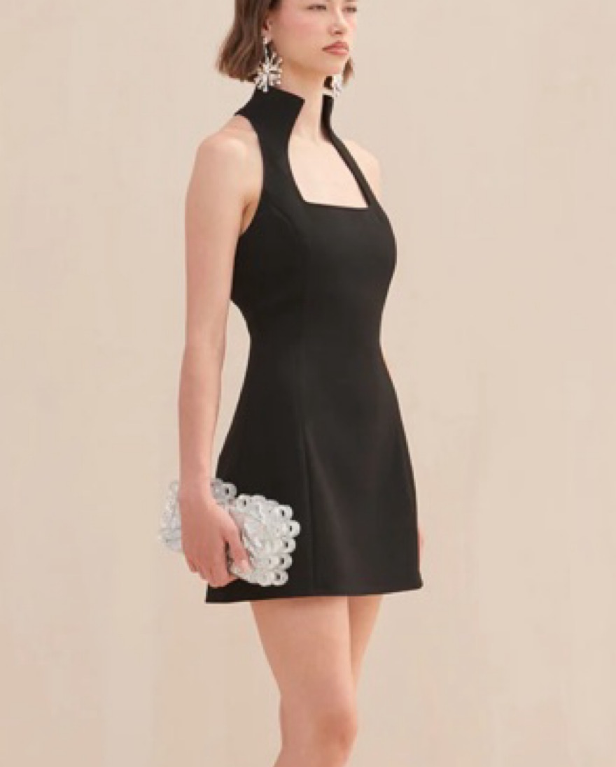 The high collar of the Akaia Dress adds drama to this confident masterpiece of a mini dress. The sleeveless silhouette flows backwards into a racerback style at the back. Structured through the waist to flatter your figure and show off your legs, while a side zip allows for easy wear.