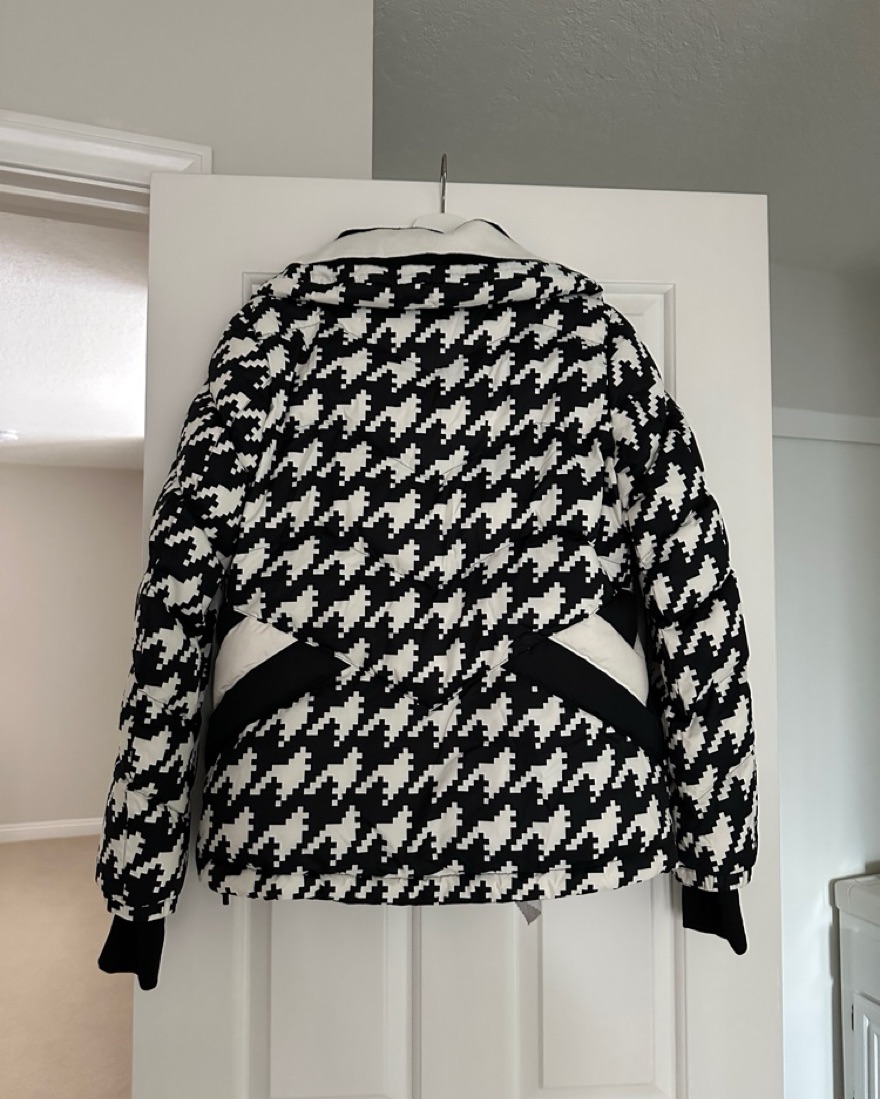 Perfect Moment Houndstooth Apres Duvet Ski Jacket Medium, would fit US 6 and smaller.