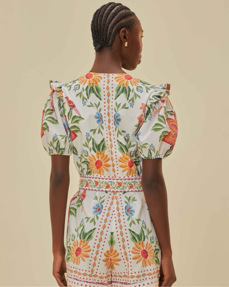 Farm Rio Off-White Bloom Garden Romper by Farm Rio - Pickle