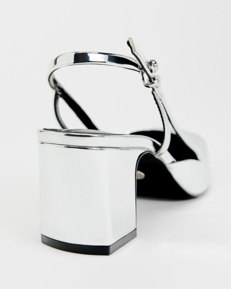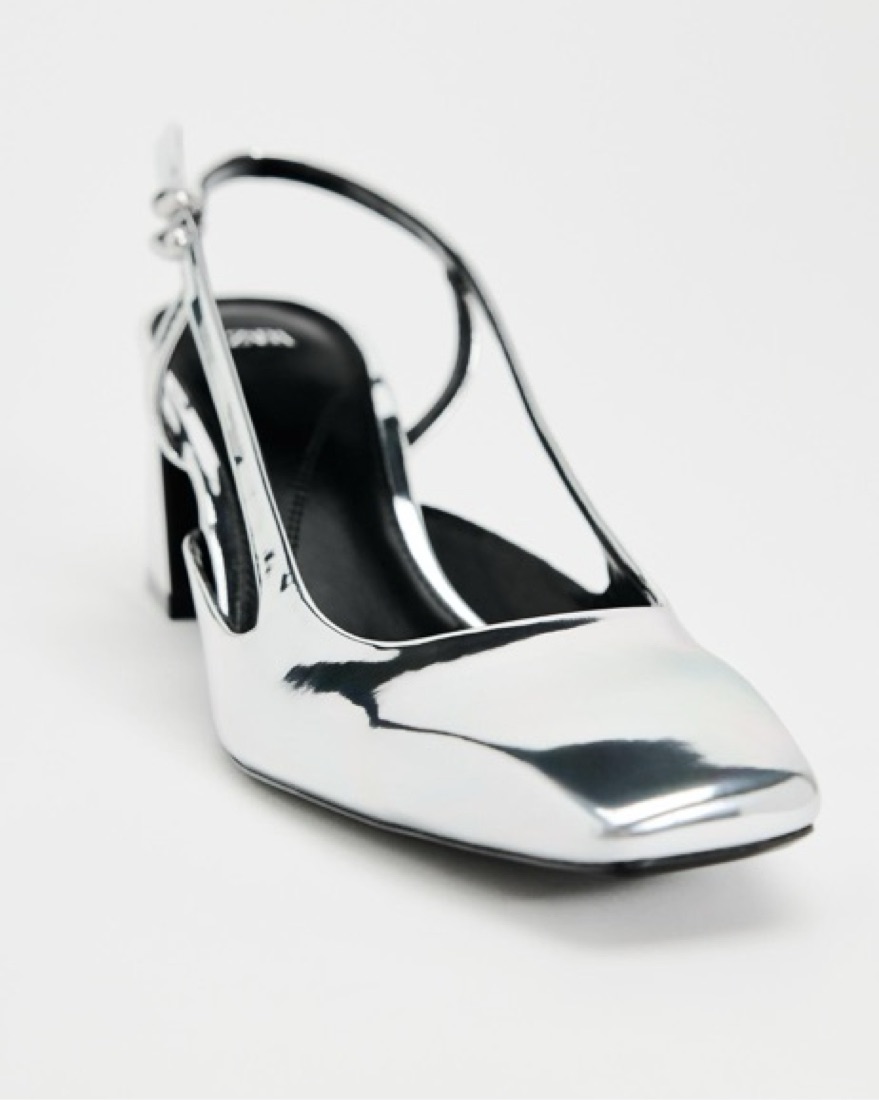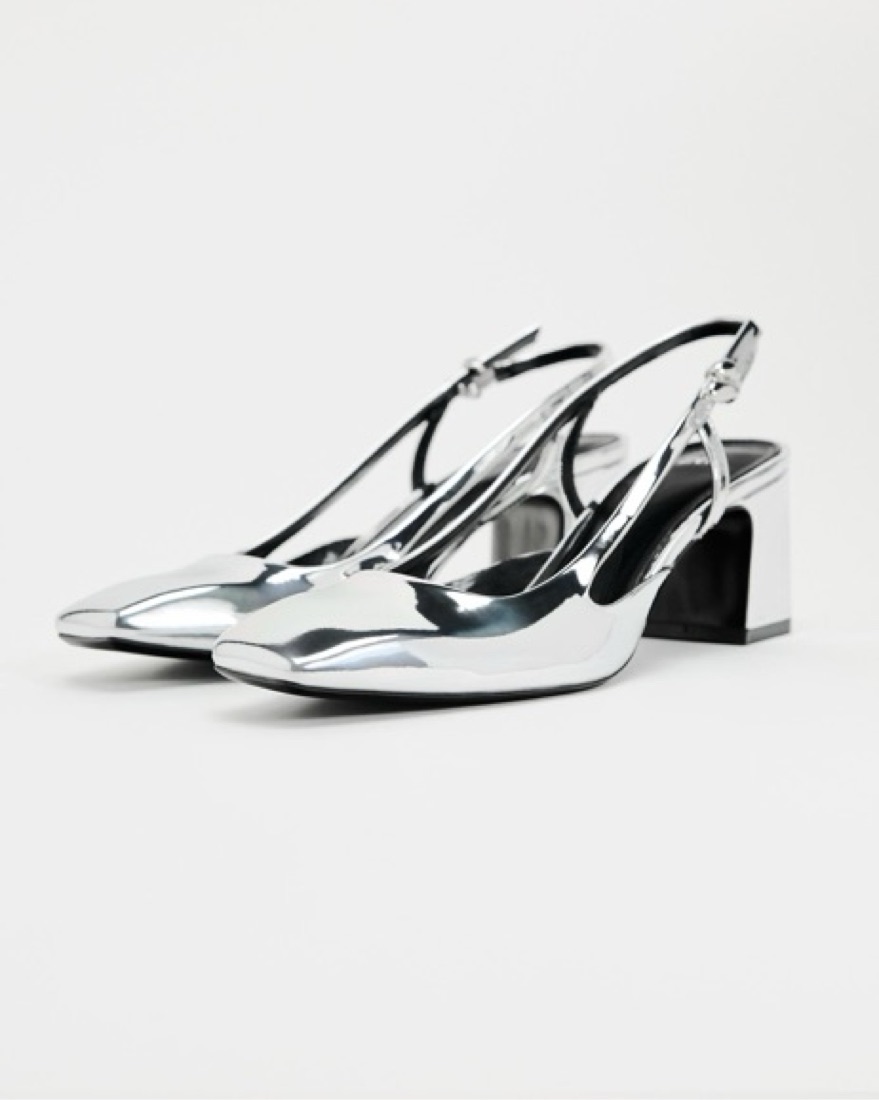 Zara slingback block heel. Metallic with rounded toe. Heel height 2.4 inches CLOSET POLICY: Happy to provide 100% fit returns for items returned same day. 50% refund 48 hours after recieving the item. 0% refund if notified at the end of the rental period. Please try on!!