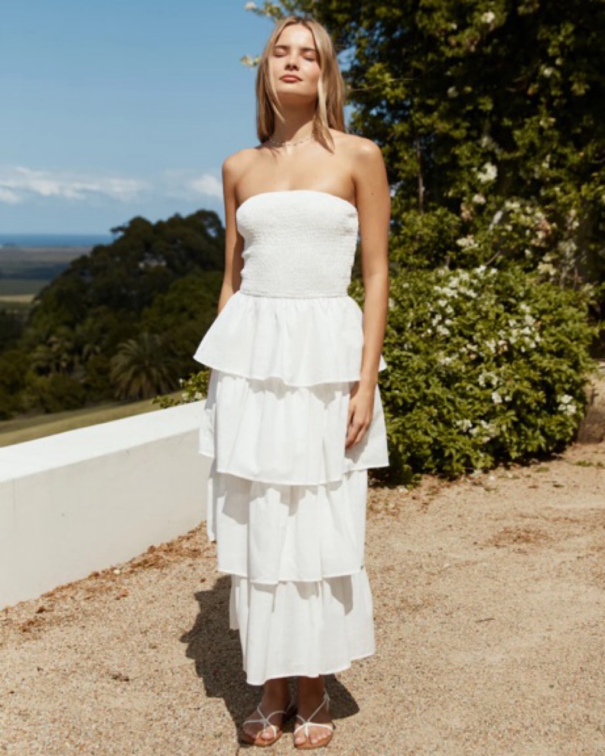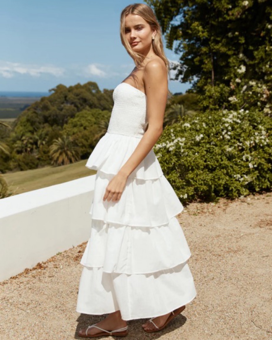 Fits 4,6 best. The dress is linen material so a steamer is useful. Gorgeous dress for a warm holiday or bridal party. Dry cleaning is included in price however stains and damage will cost extra depending on severity. Treat with care.