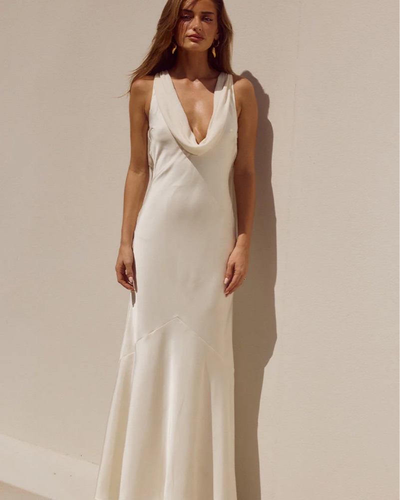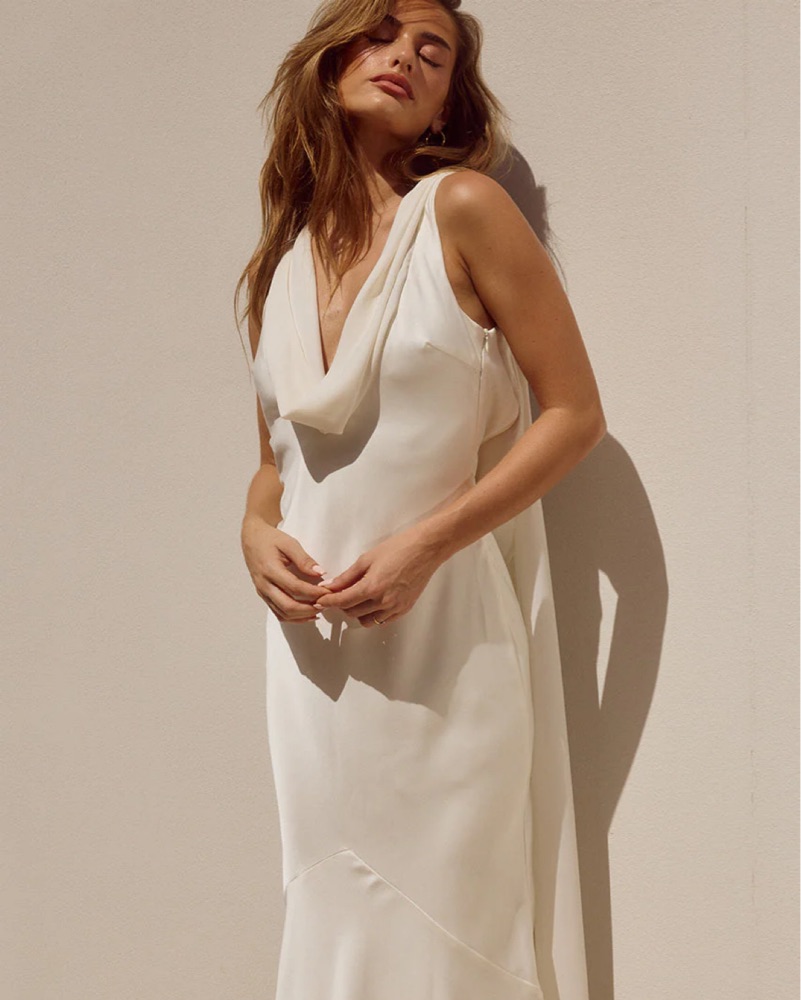 This stunning white maxi dress is perfect for a formal event or special occasion. The flowing, draped fabric creates a beautiful silhouette! I almost wore it as my elopement dress but went with another option. I can’t return so I’m here selling!