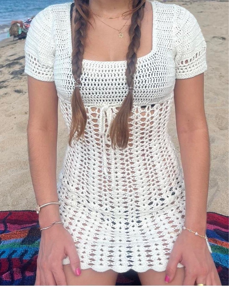 Amira Mini Dress - more to come - purchased from Revolve. This chic crochet lace coverup dress is perfect for a beach day or vacation. Pair it with a swimsuit or as a lightweight cover-up.