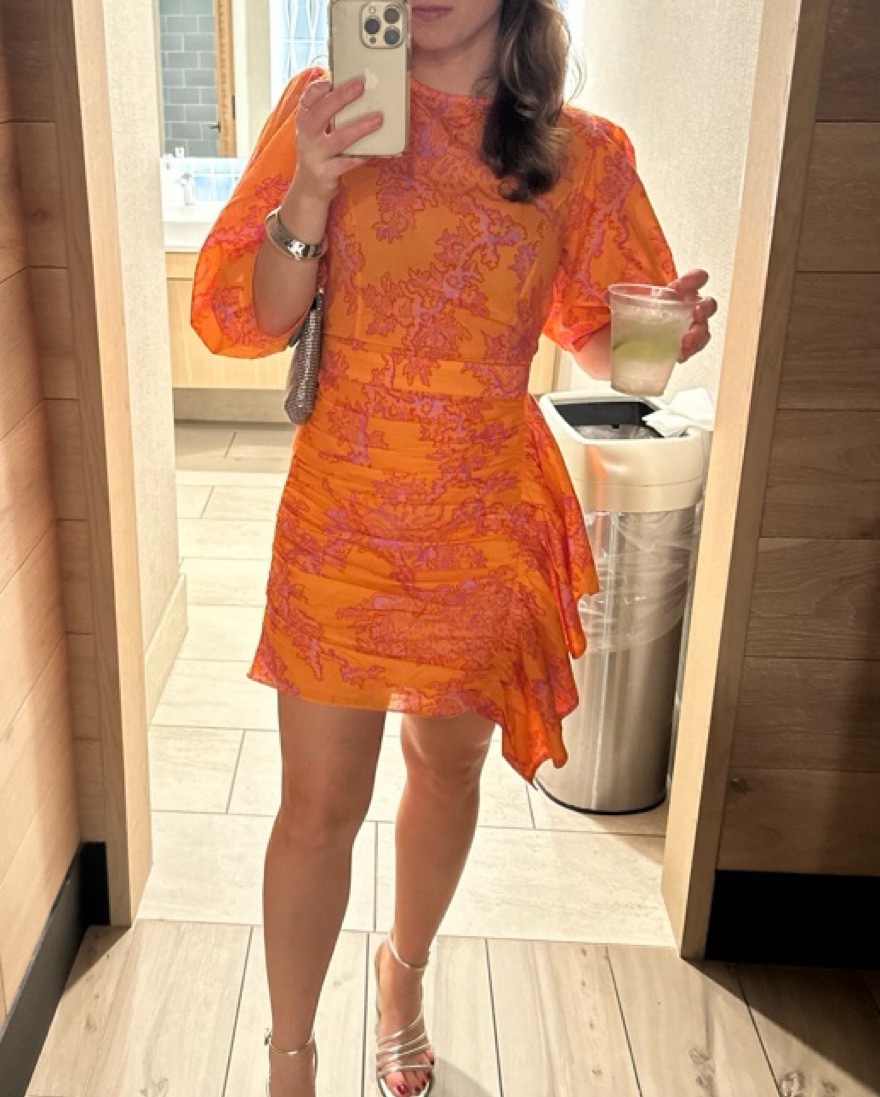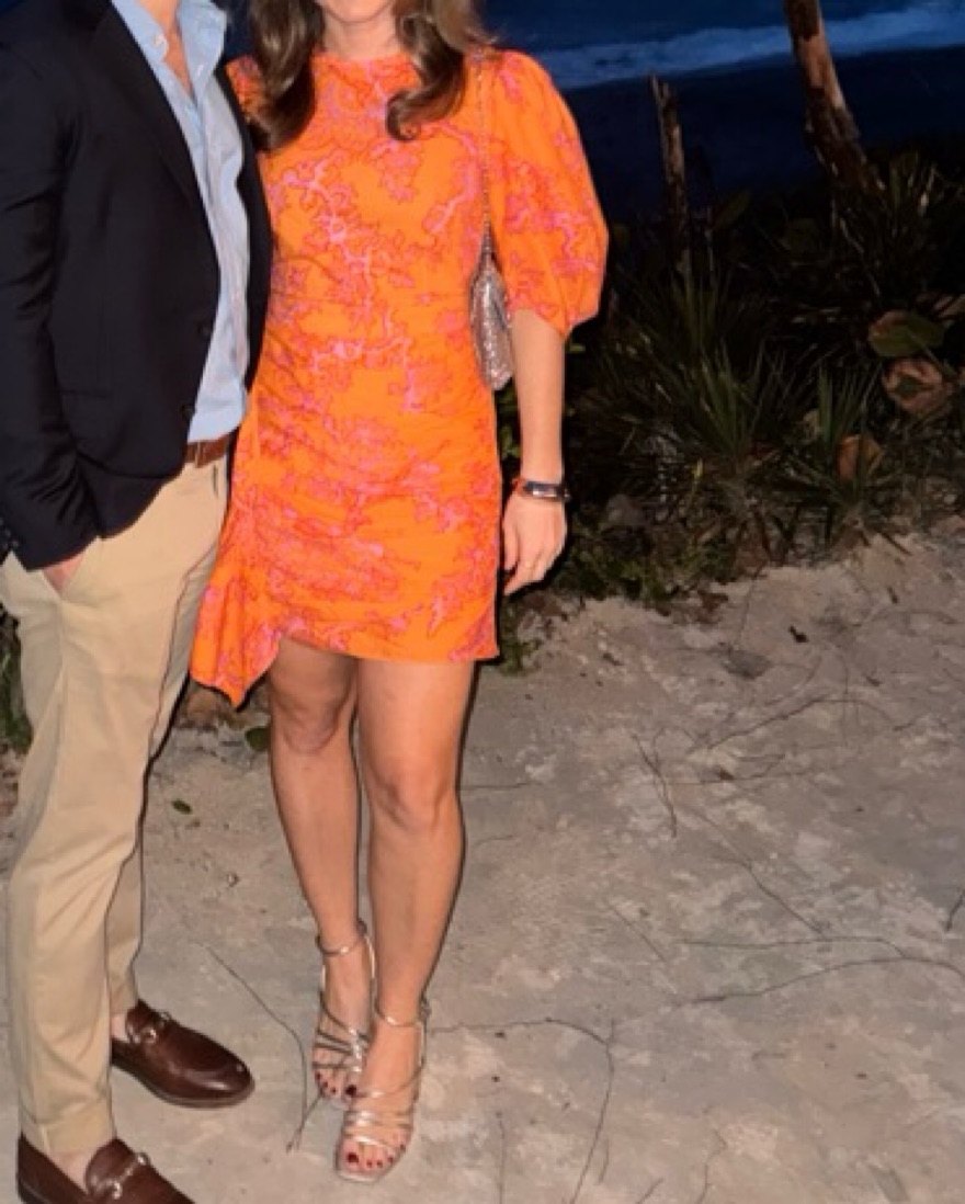 Colorful linen mini! Puffy sleeves and ruffle detail on side. Very flattering