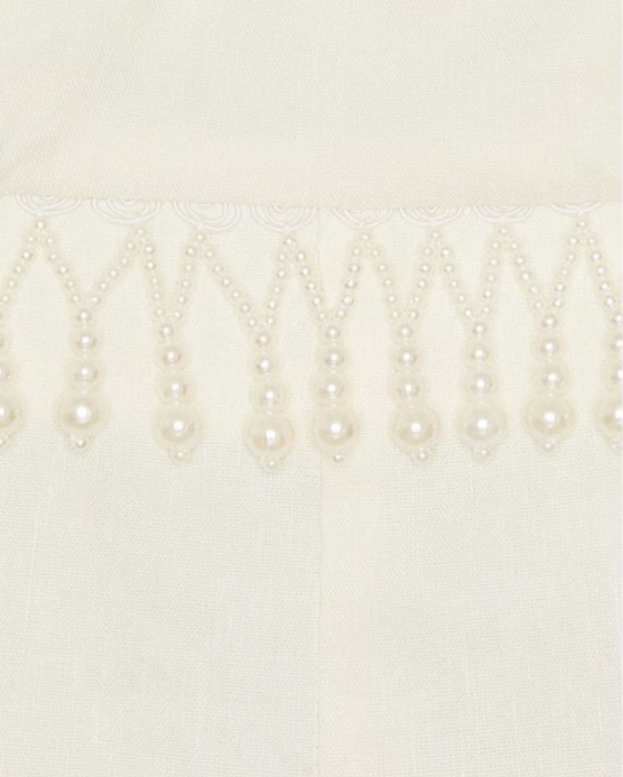 This stunning white mini dress is perfect for a special occasion. The delicate pearl details and flirty silhouette make it a versatile choice for bachelorette, parties, or a night out.