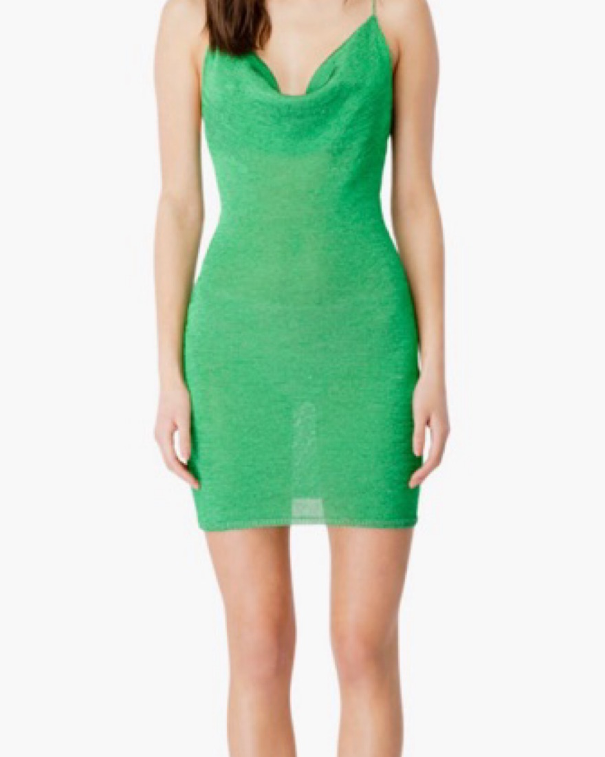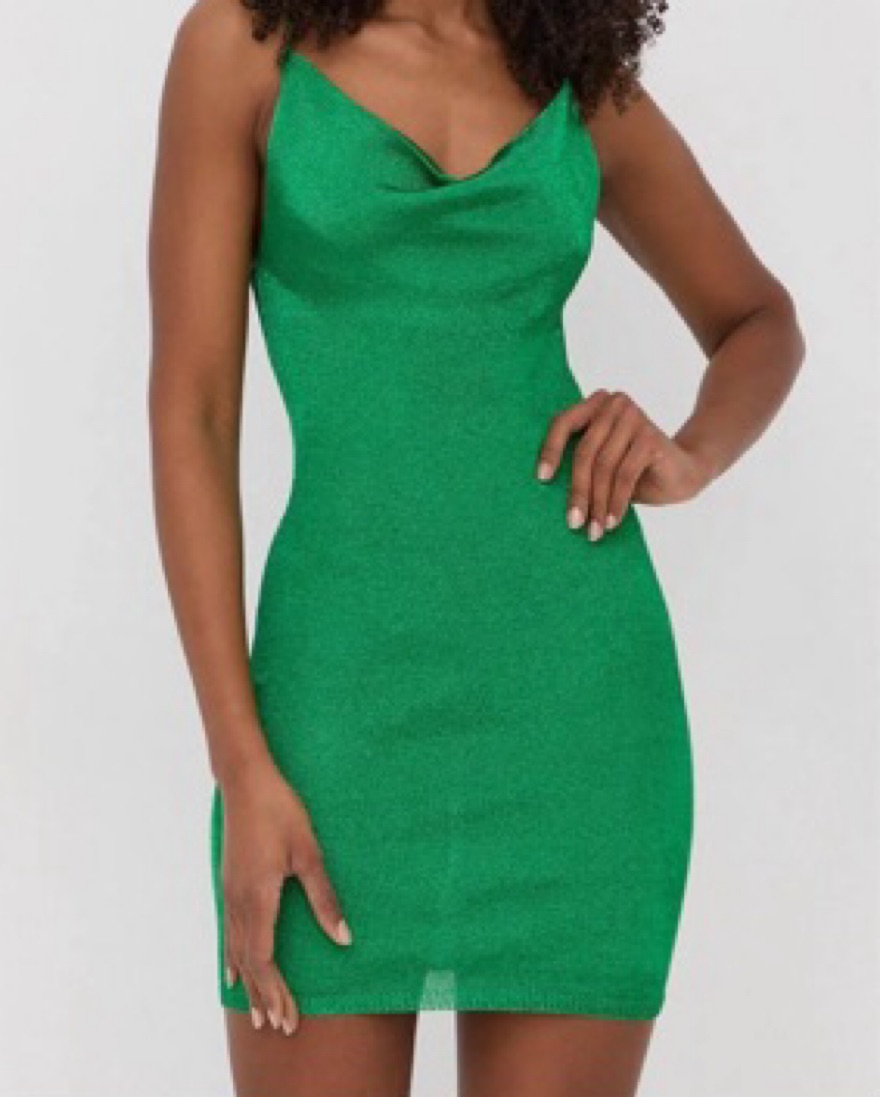 This stunning green mini dress is perfect for a night out on the town. The form-fitting silhouette and spaghetti straps accentuate your curves, making you feel confident and glamorous.