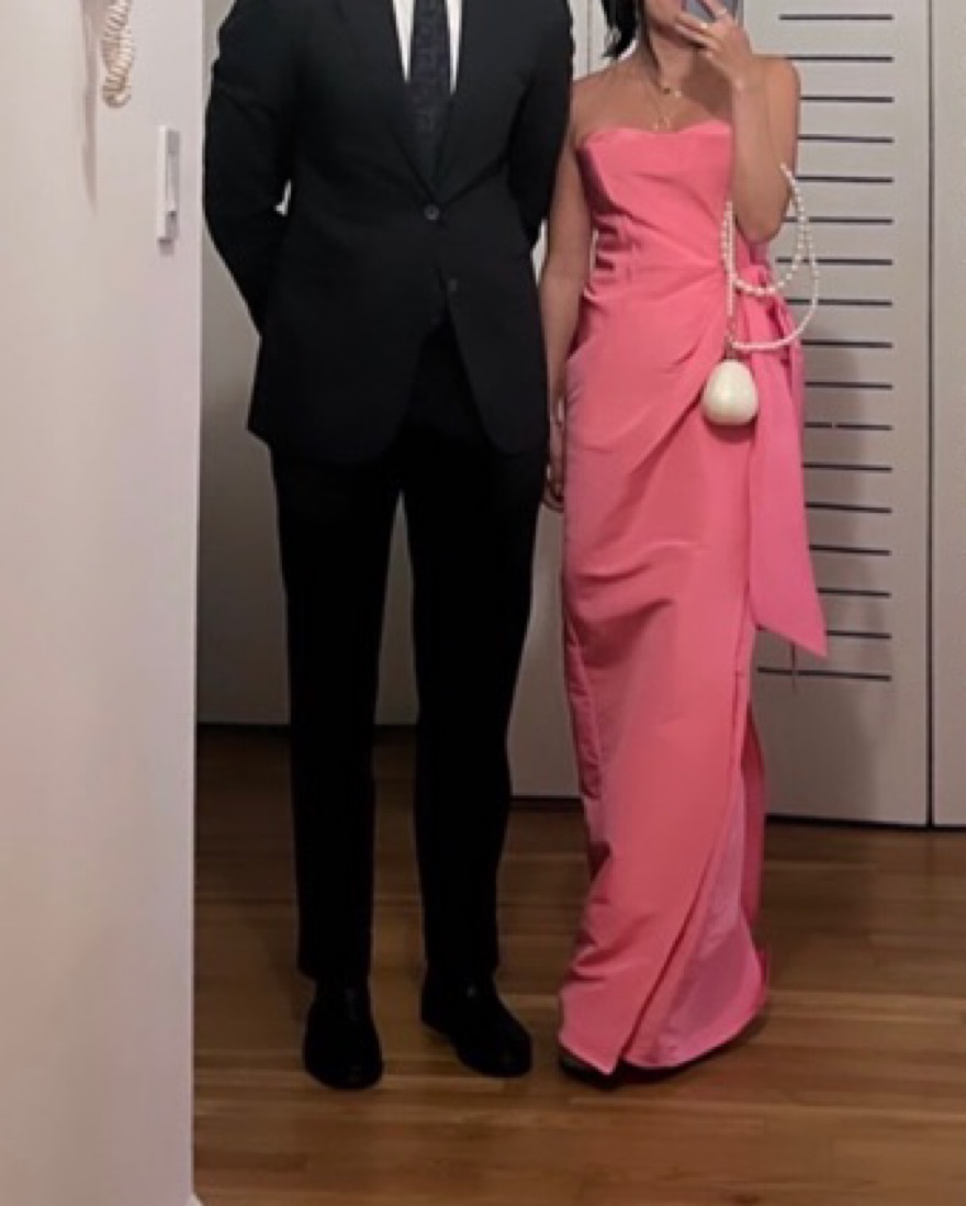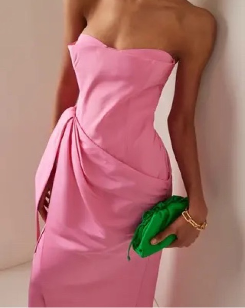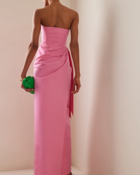 Rosie Assoulin pink knotted bustier dress - maxi length. Great for weddings and galas. Material is silk faille (feels a lot like taffeta). Size 2. Great for spring weddings!