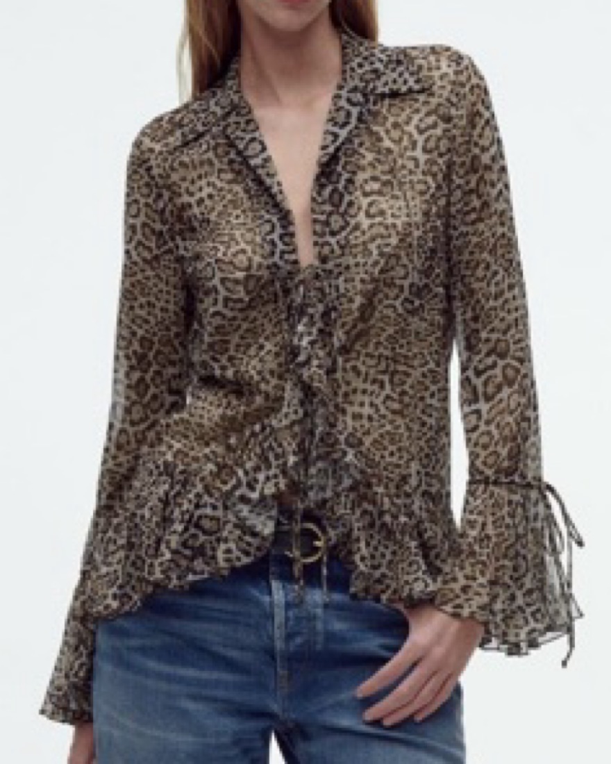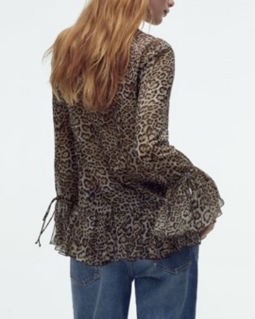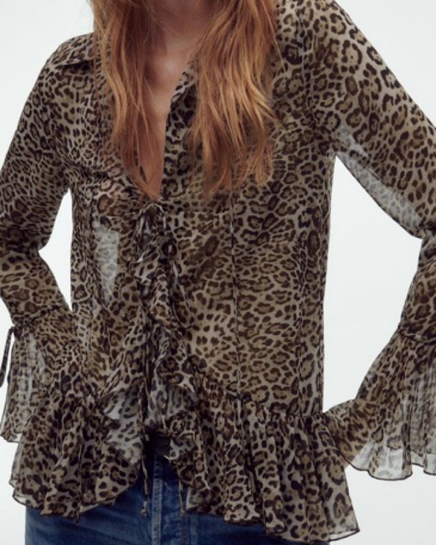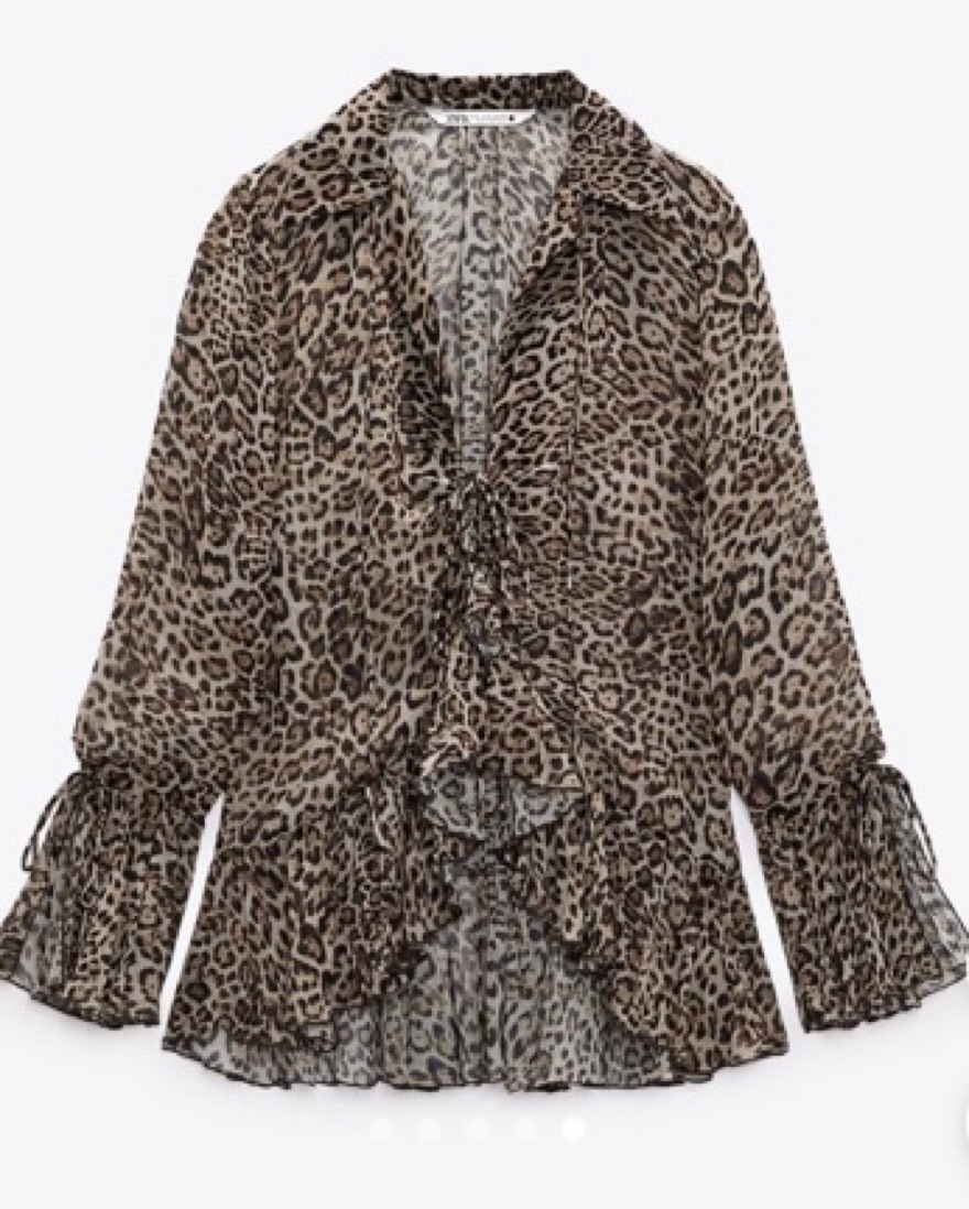 Zara Ruffle Leopard Print Blouse by Zara - Pickle