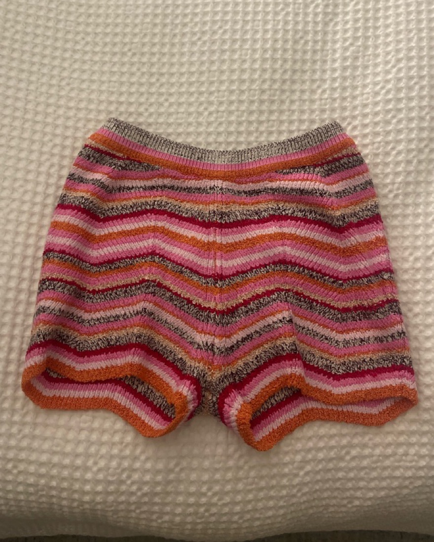 Pink and orange combo color. Stretchy, soft knit fabric