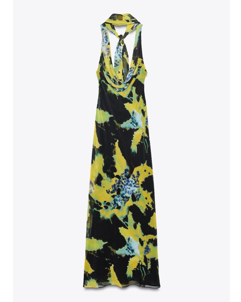 Cowl Neck Foulard Print Long Dress by Zara - Pickle