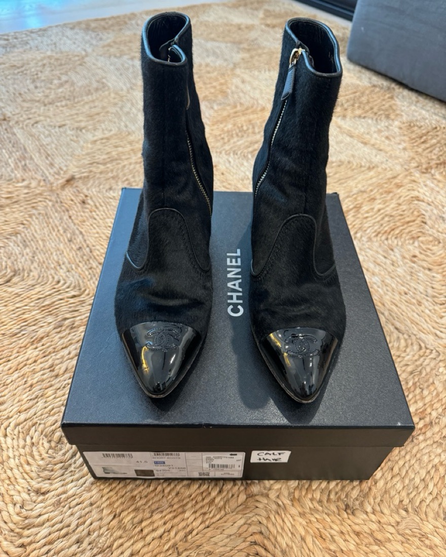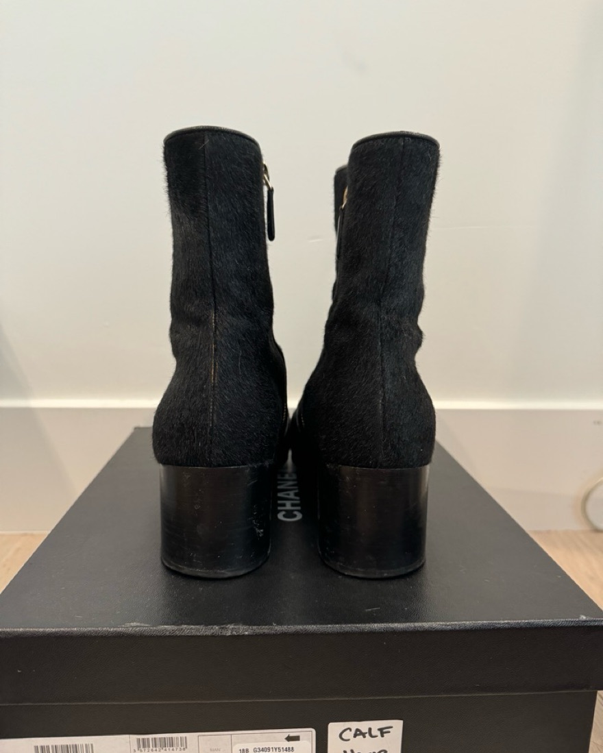 Chanel CC Cap Toe Calf Hair Ankle Boots
