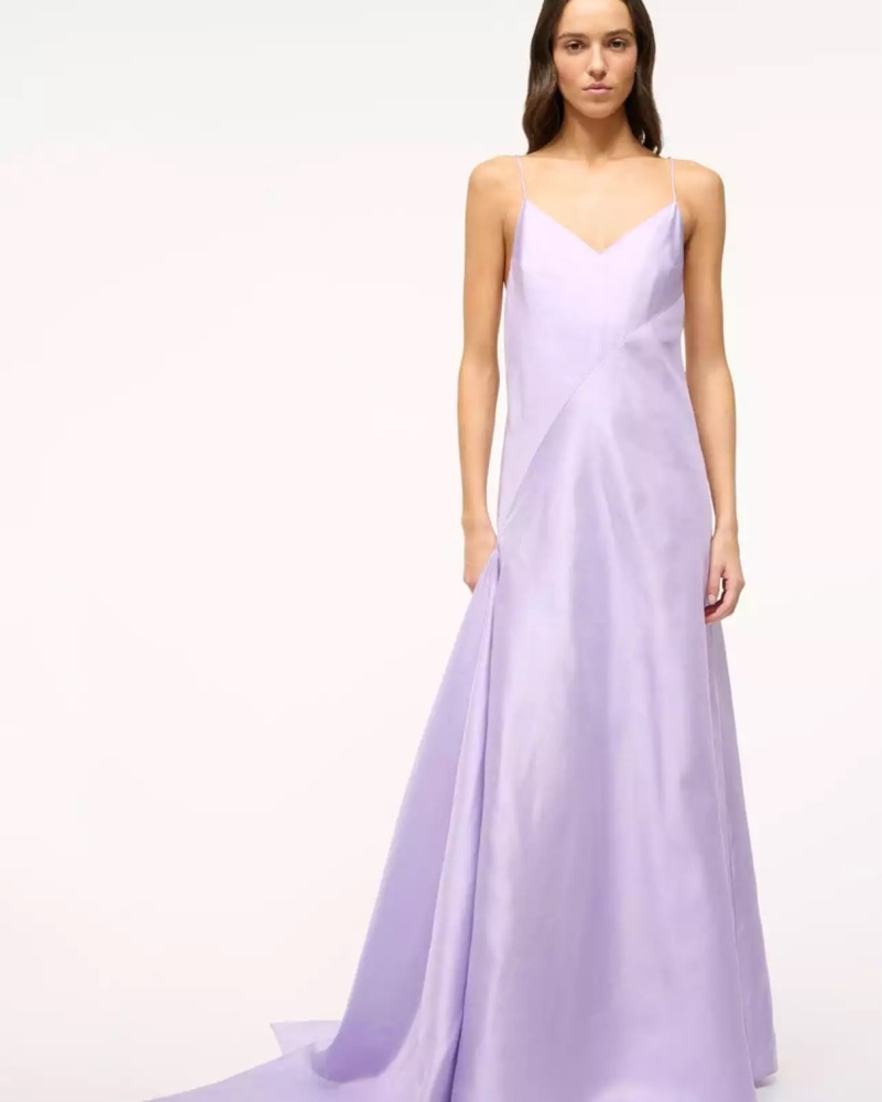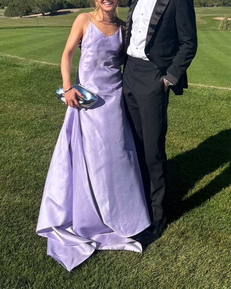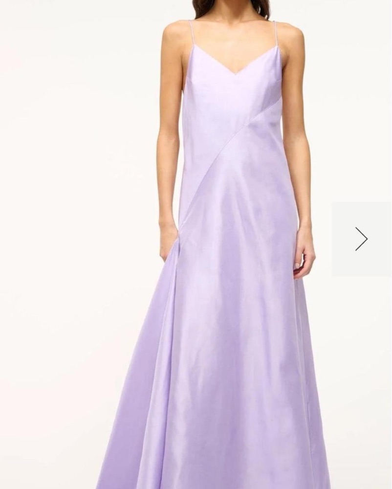 This stunning lavender maxi dress is perfect for a formal event or special occasion. The flowing fabric and open back design create a sophisticated and elegant look.