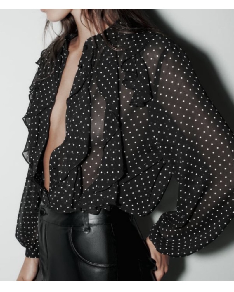 Zara Ruffled Polka Dot Blouse by Zara - Pickle