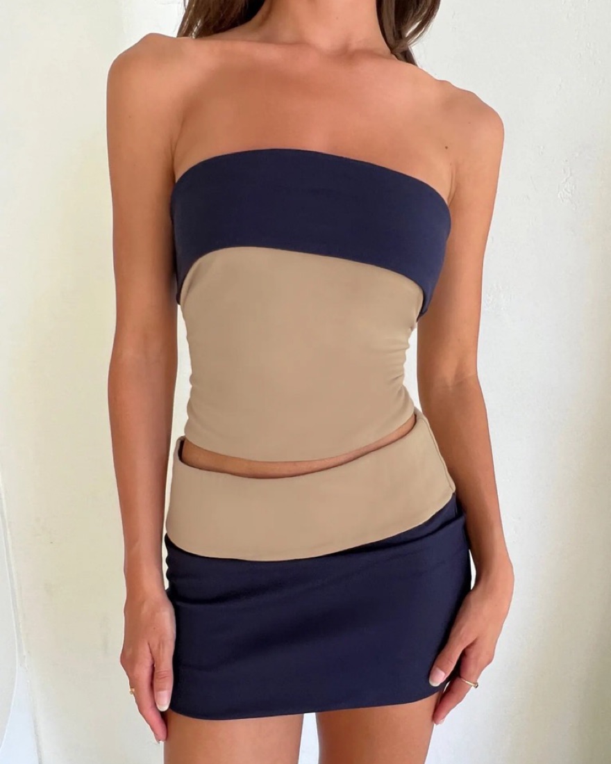 Blue/tan skirt (size M) and tube top (size S)