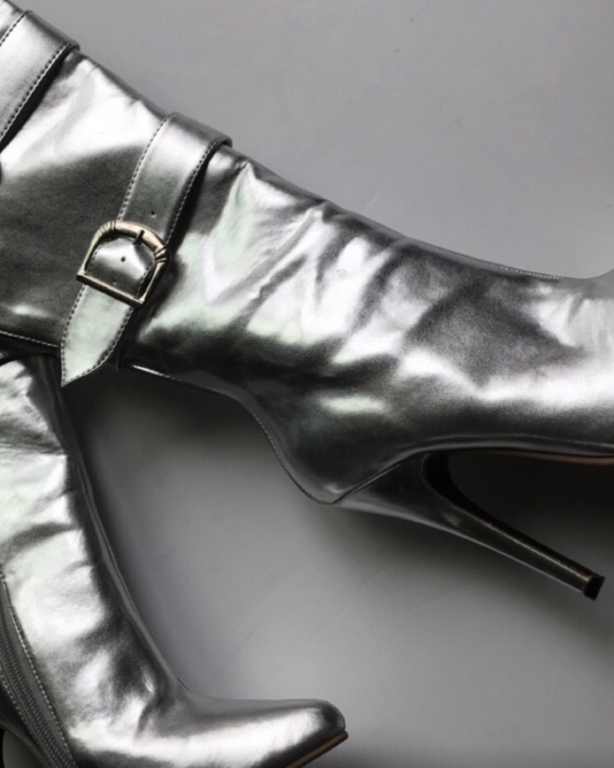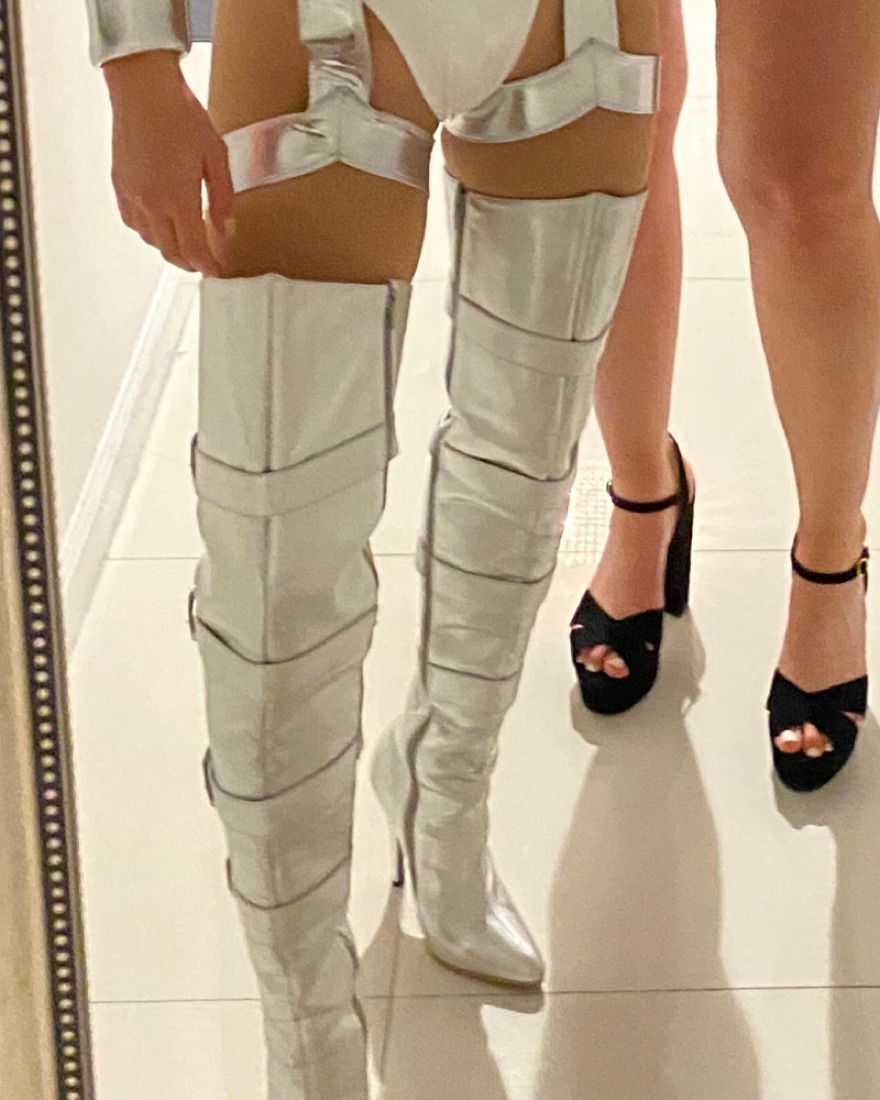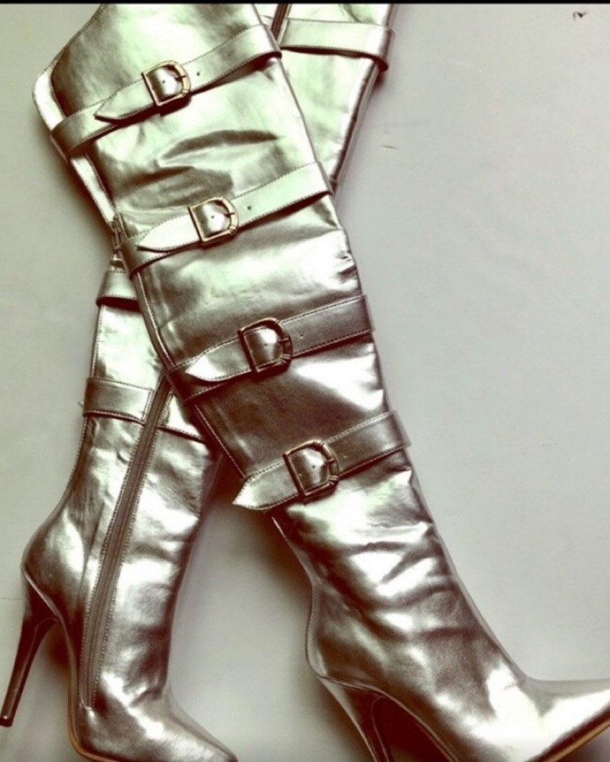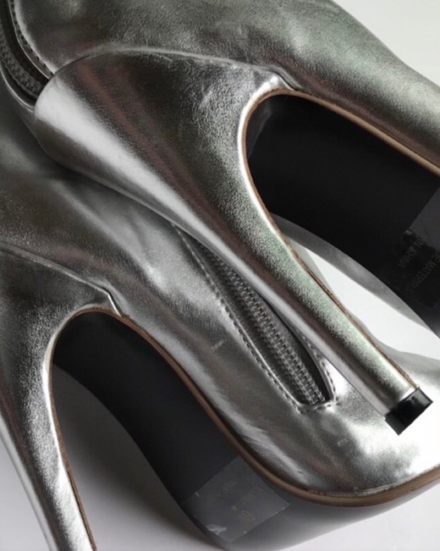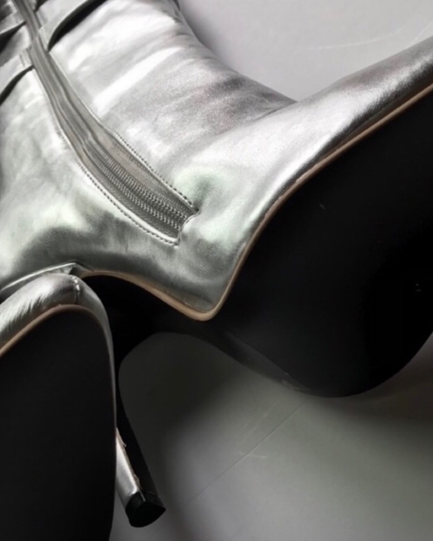 Thigh High Silver Boots by The Highest Heel - Pickle