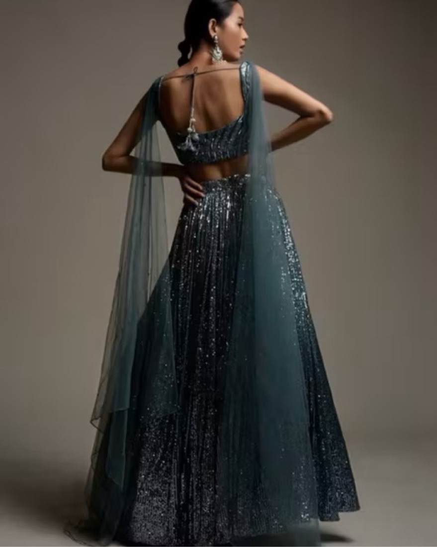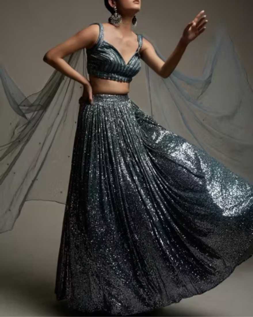Cinderella blue/silver sequin Lehenga Embellished In Sequins from Kalki Fashion. Perfect for Indian Wedding Reception. Bridal wear