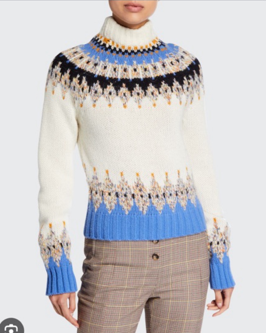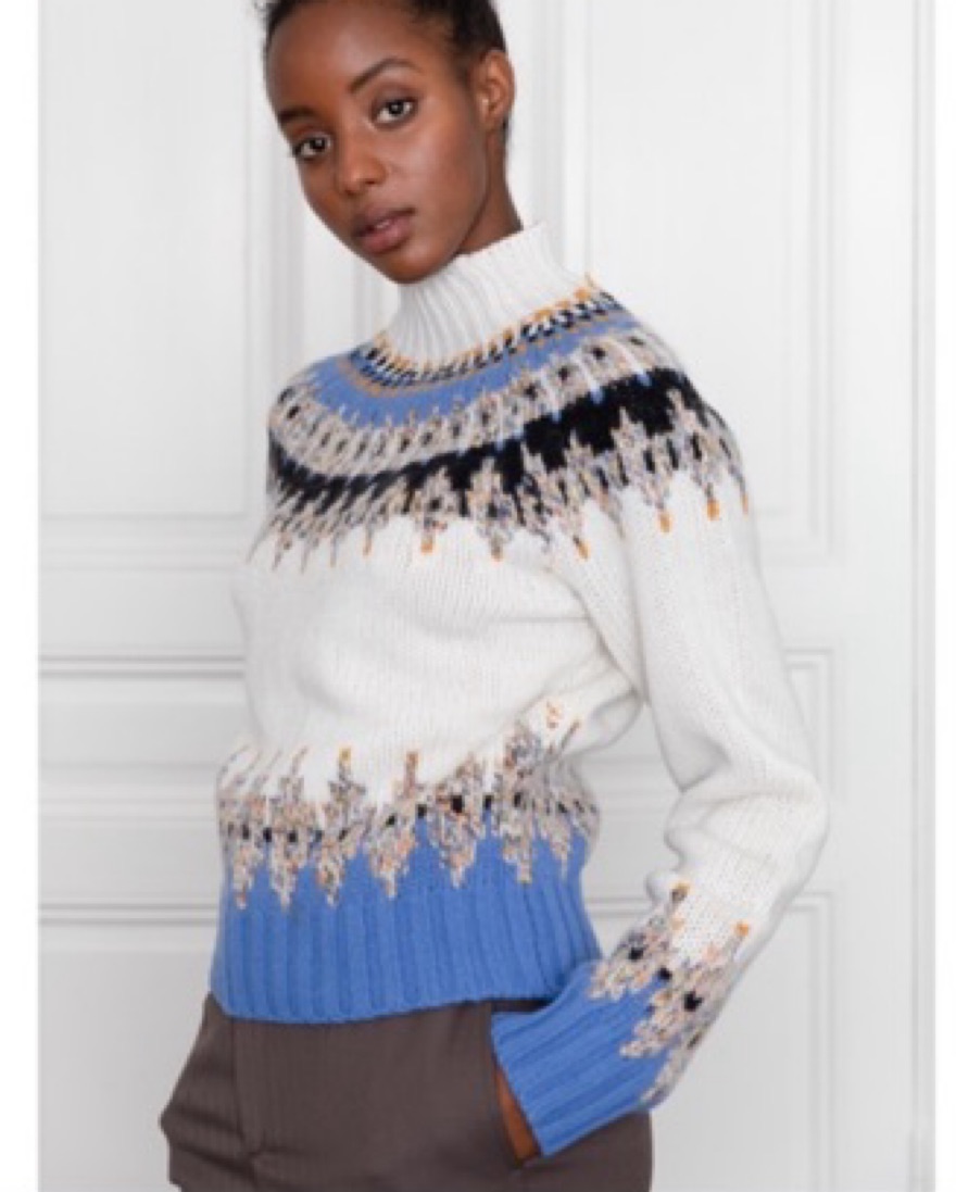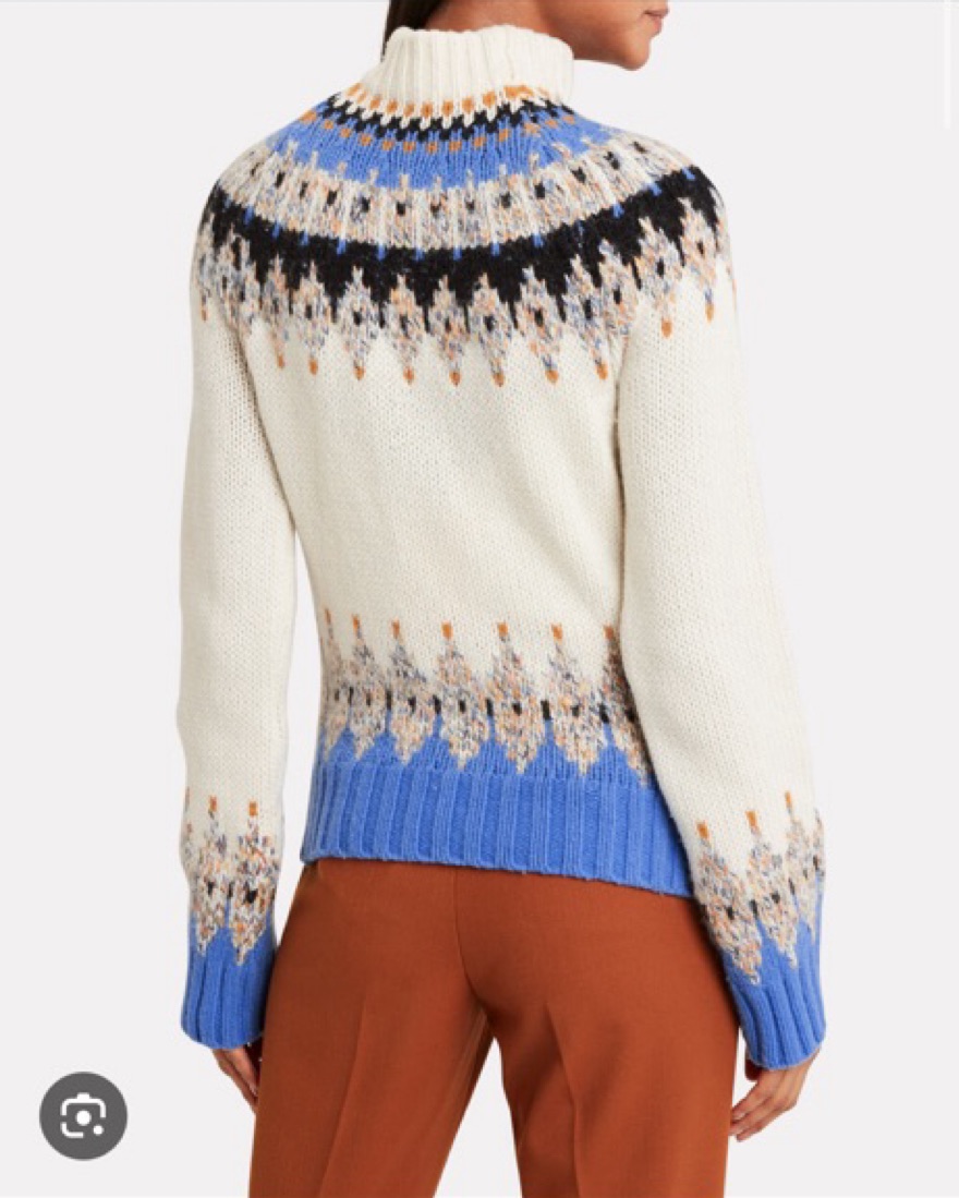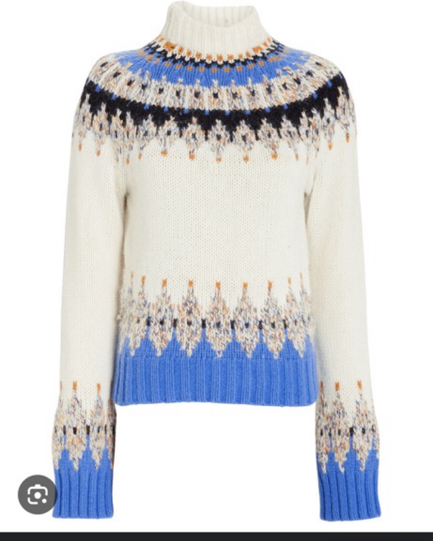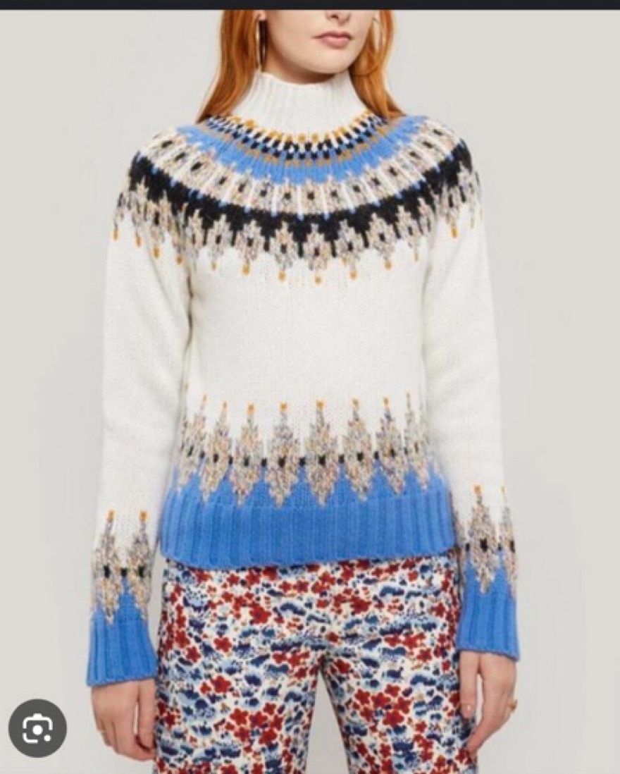 Fair isle wool sweater from stine goya. Super cozy and warm. Blue and yellow detail on cream base