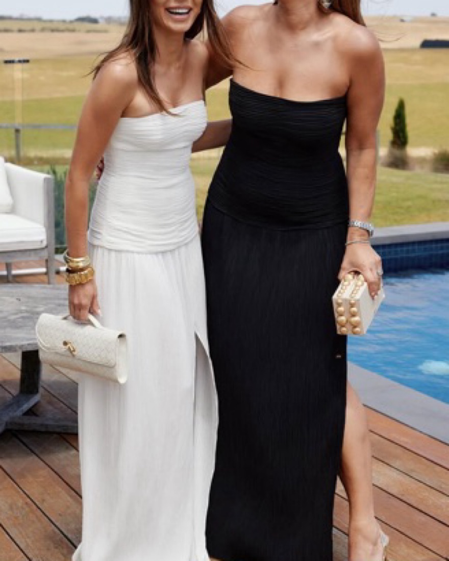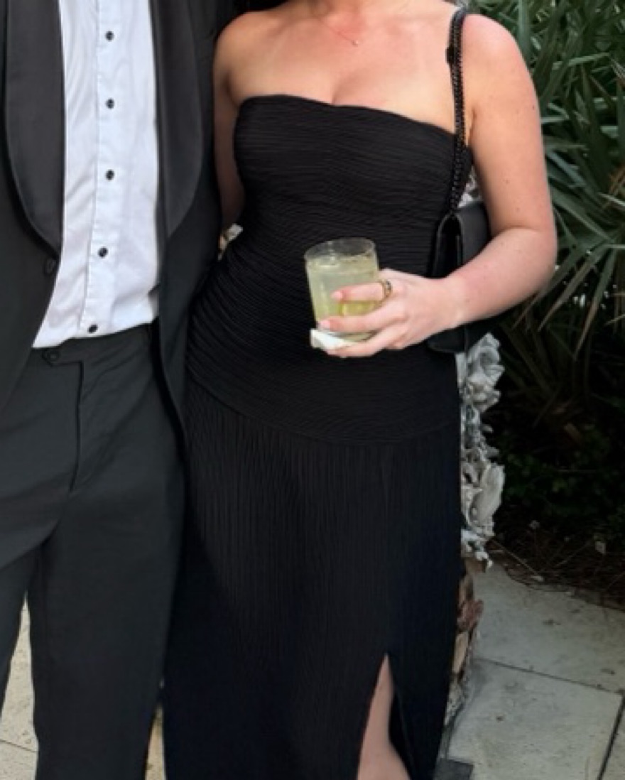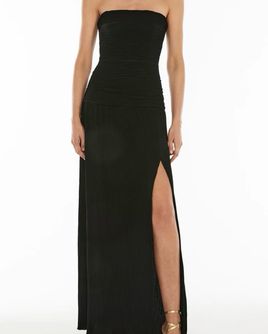 Double time pleat strapless dress in black. Worn once to a black tie wedding! AU size 10 = US size 6