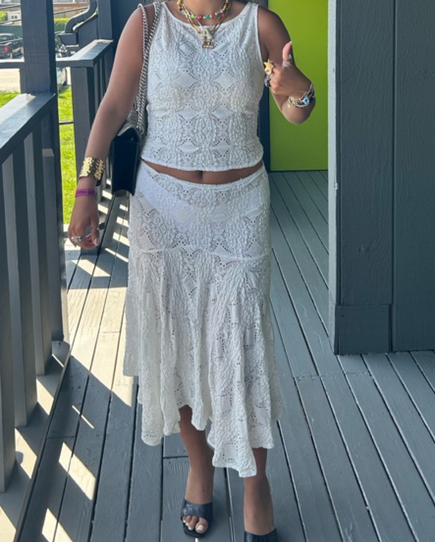 Worn once - with jean white top and skirt matching set. Top M bottom M - think runs small