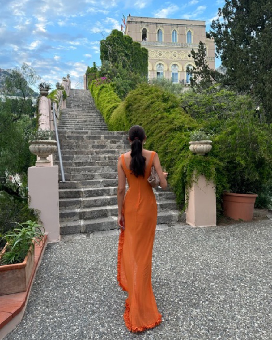 Sheer, orange, such a fun color and surprisingly sooo flattering. The photos are of me and iām 5ā8ā