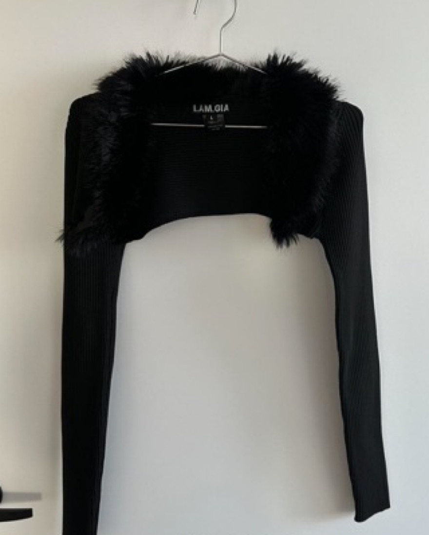 Detachable faux fur. Size L but would fit S-L! Very stretchy and flattering