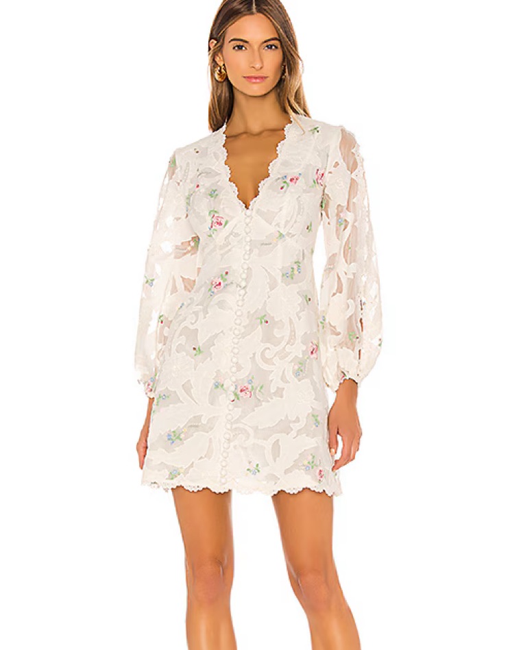 Embroidery floral detail white long sleeve mini dress Zimmermann size 1