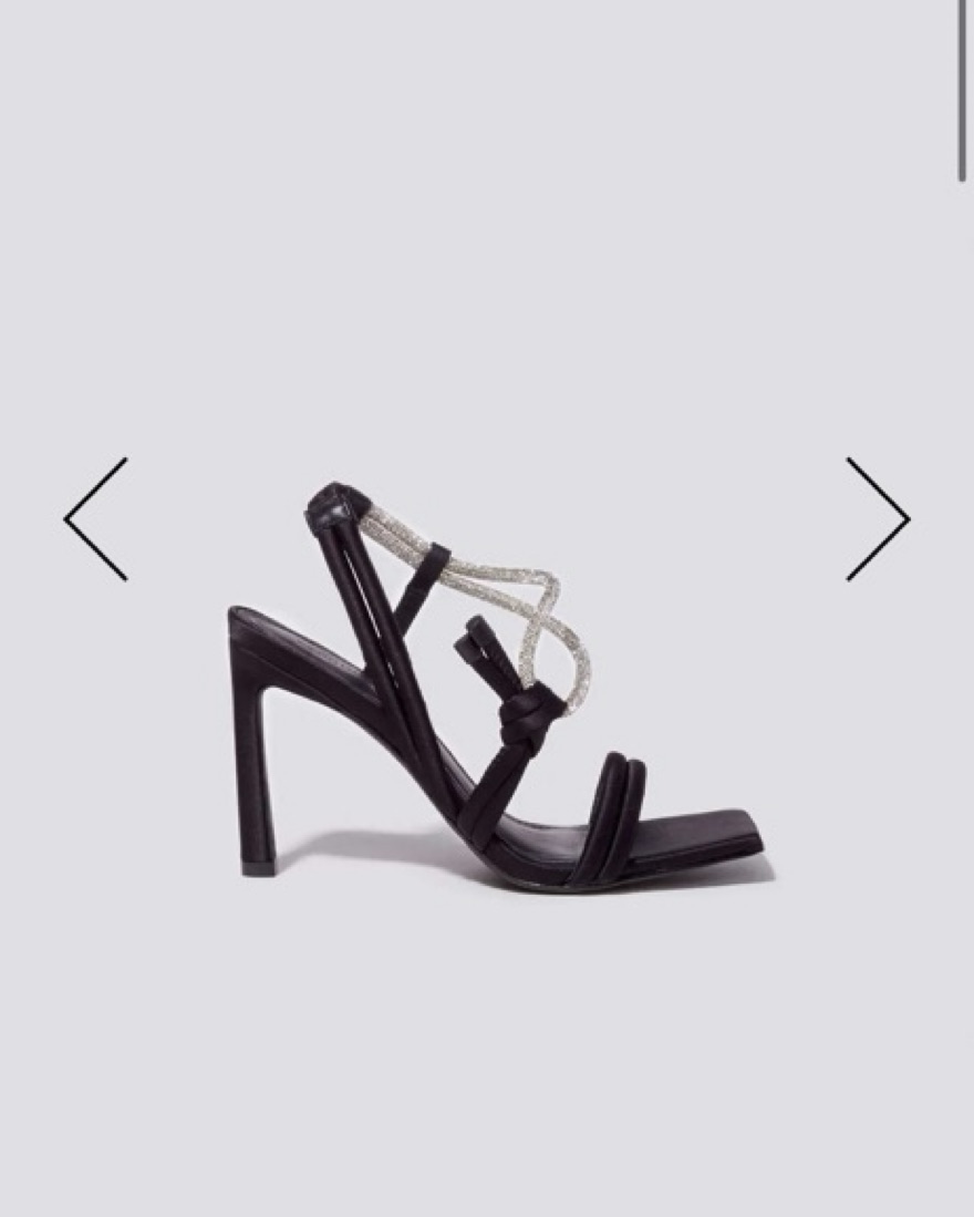 Size 36 Slip-on style Heel height is 4" Elasticized ankle strap Inner: 100% Lamb leather, Outer: 100% Satin Specialty clean as needed Imported (Worn twice)