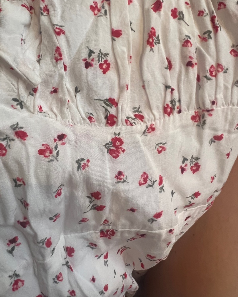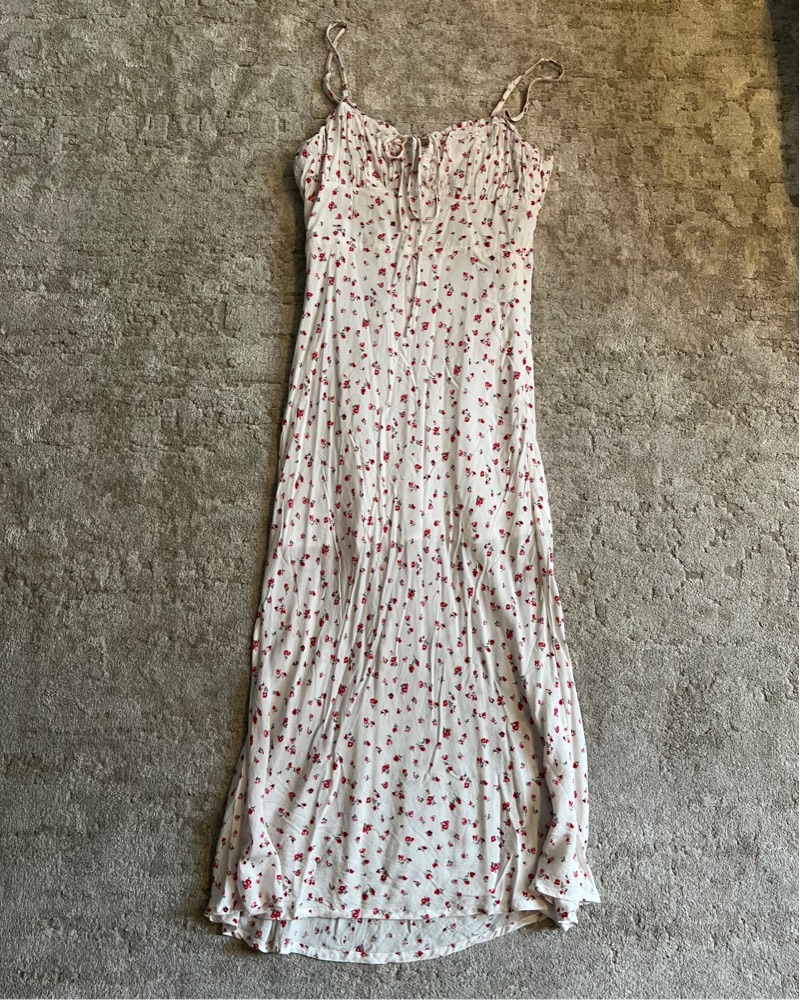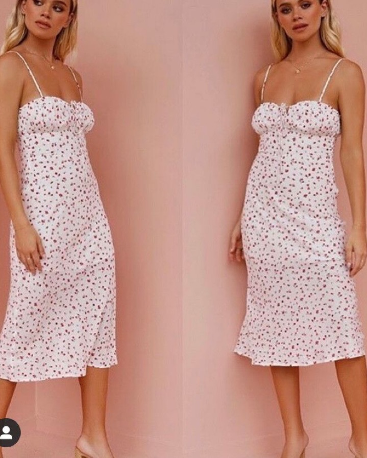 White Midi Dress With Rosettes, rouched sweetheart neckline, adjustable straps