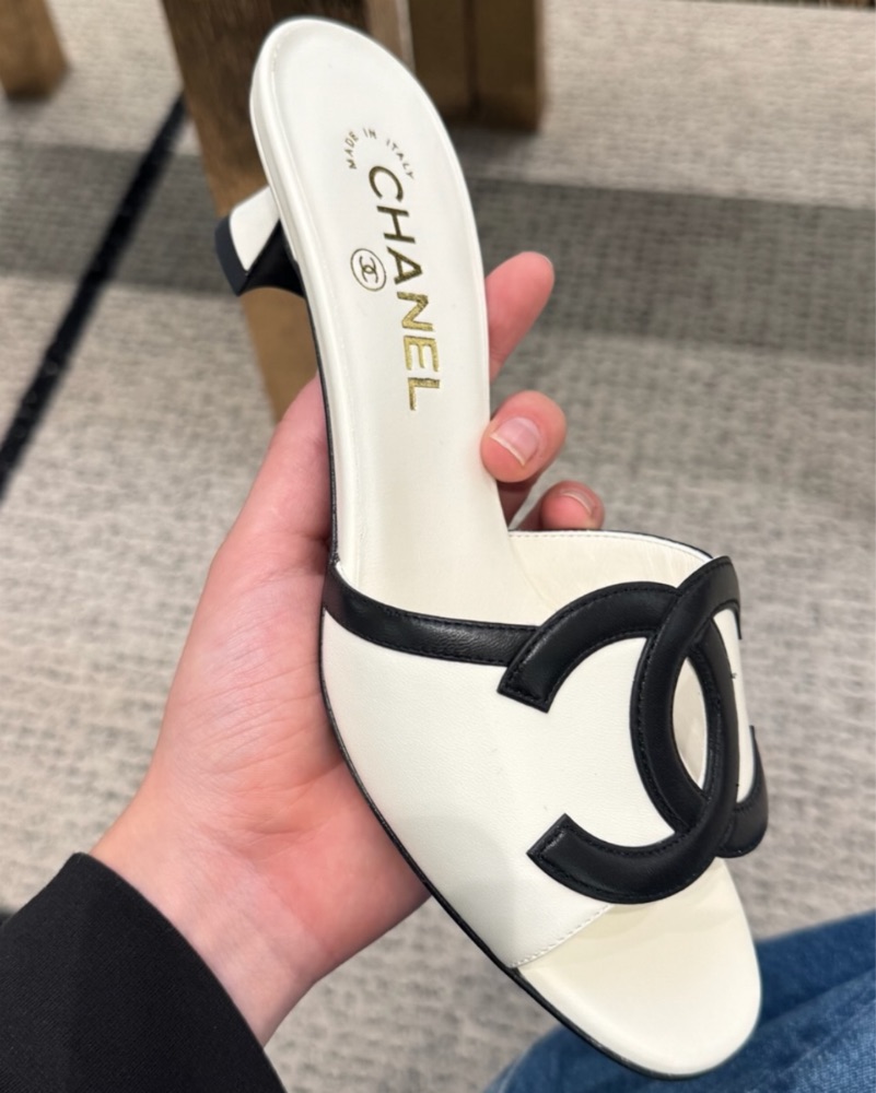 Cute kitten heels mules from Chanel’s new season. White and black. 38
