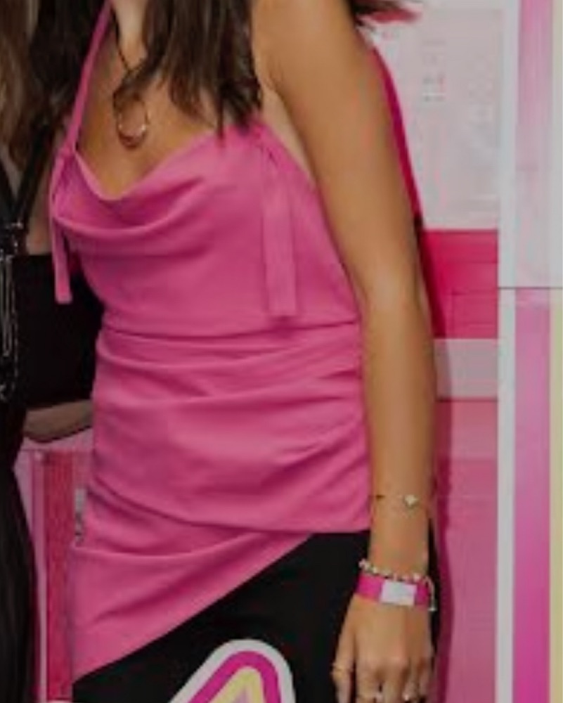 Amanda Uprichard pink dress with ruching and high leg cut. You could also wear this as a shirt too!