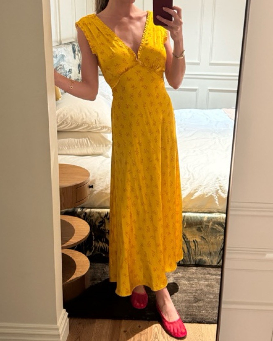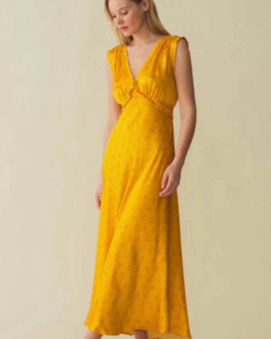 This stunning maxi dress is perfect for a summer evening out. The vibrant yellow color and flowing silhouette create a chic and elegant look.