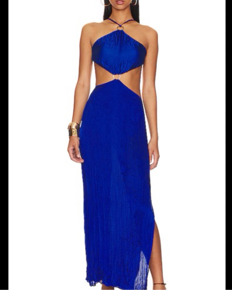 Super cute dress for any occasion! Would say it can fit sizes XS-M (waist and back are adjustable)