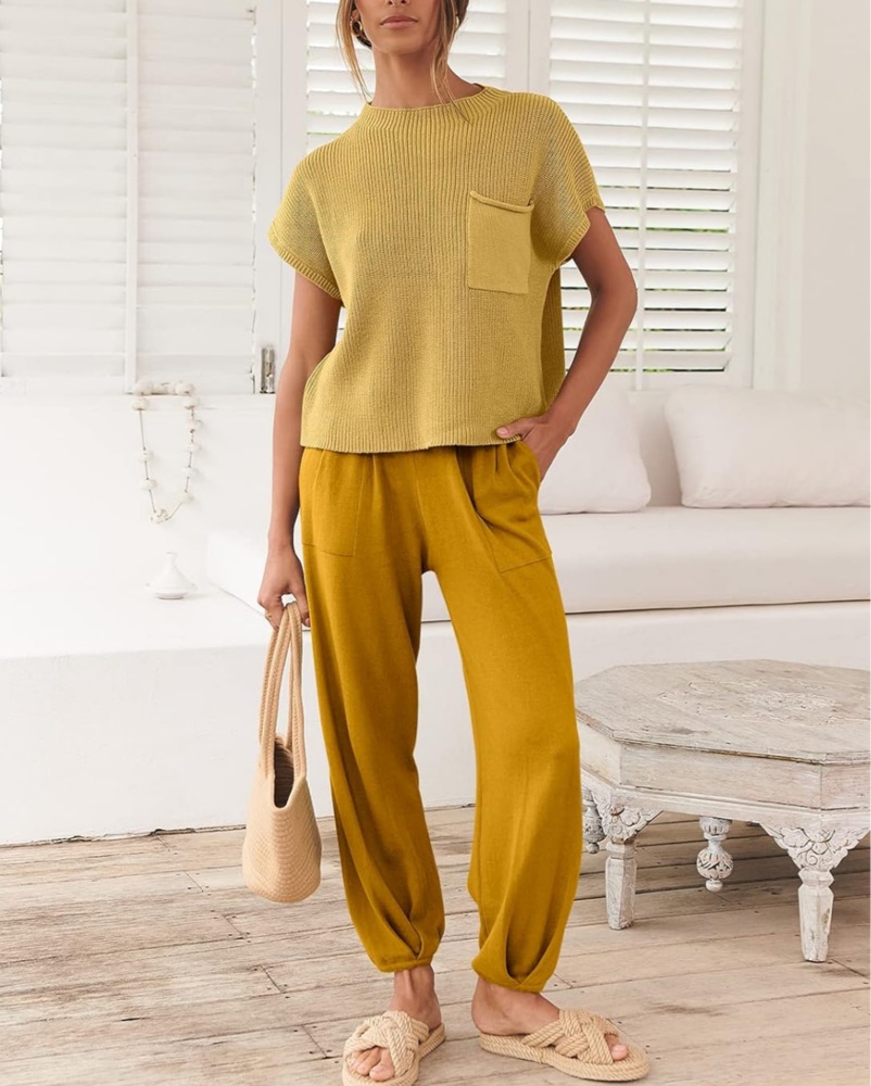 Gorgeous lightweight summer sweater set, perfect as a beach coverup or a cute day fit 💛