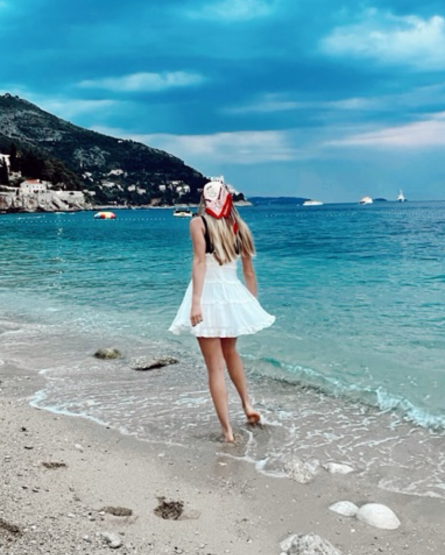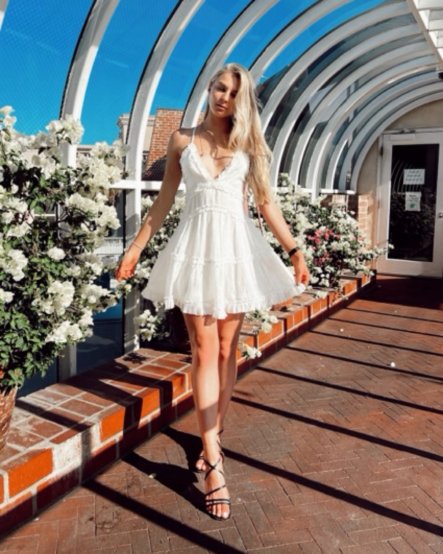 White flowy low cut dress perfect for vacation or to wear as a birthday dress! Fits size S but has adjustable straps.