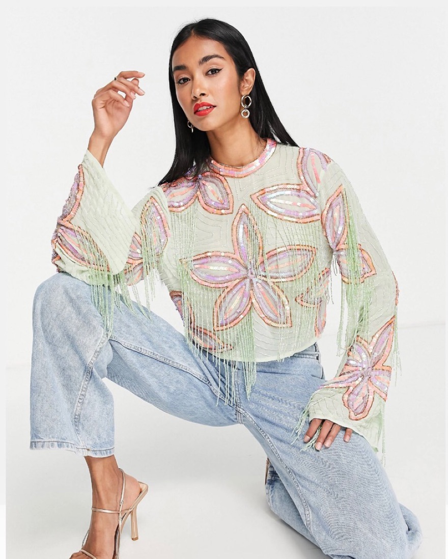 ASOS Beaded Fringe Tassel Top by ASOS - Pickle