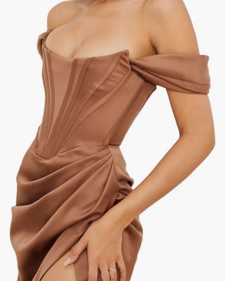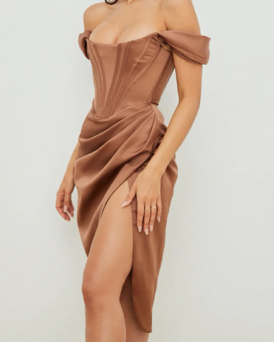 House of CB Loretta Off the shoulder satin corset dress